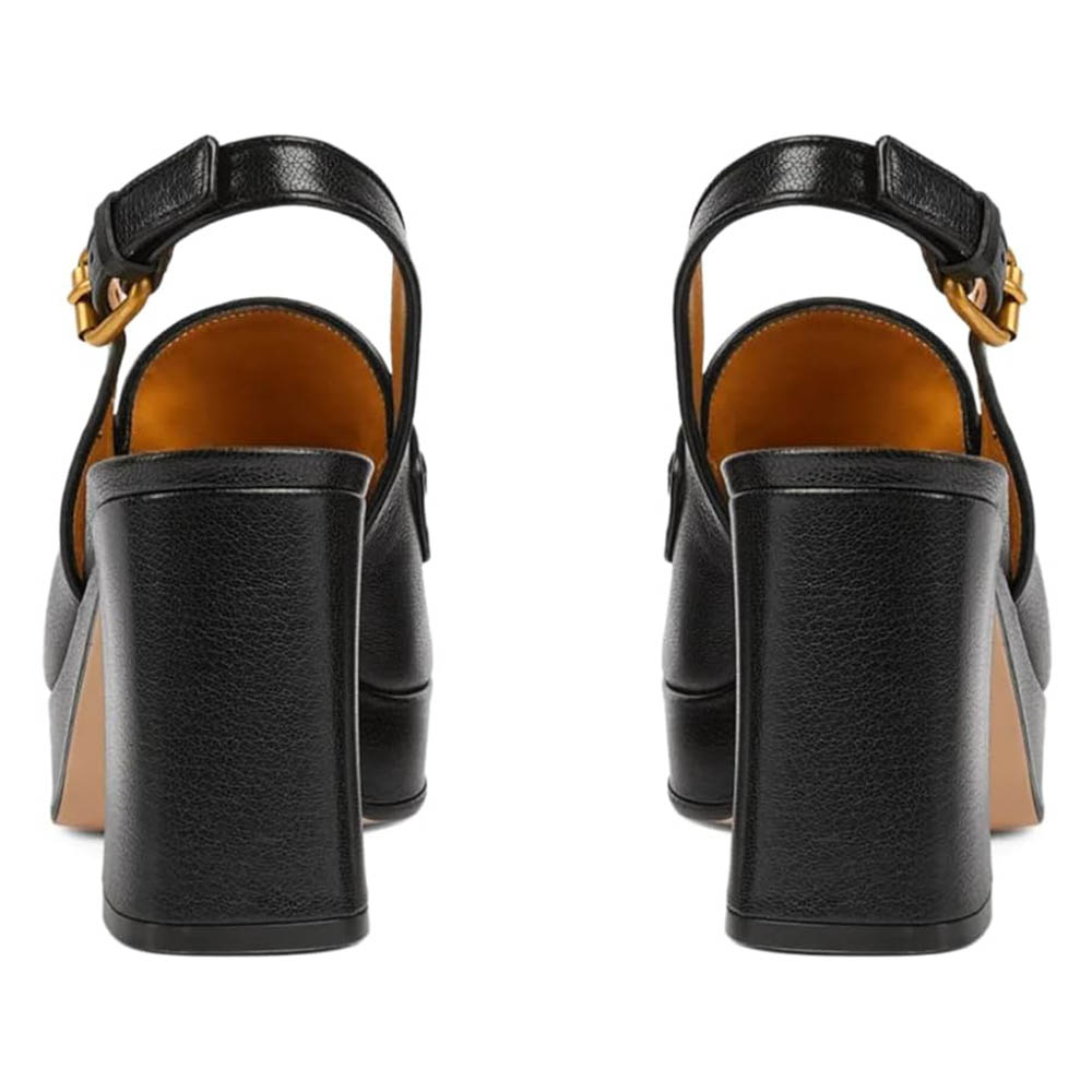 Black Square Toe Chain Decor Slingback Platform Loafers Women