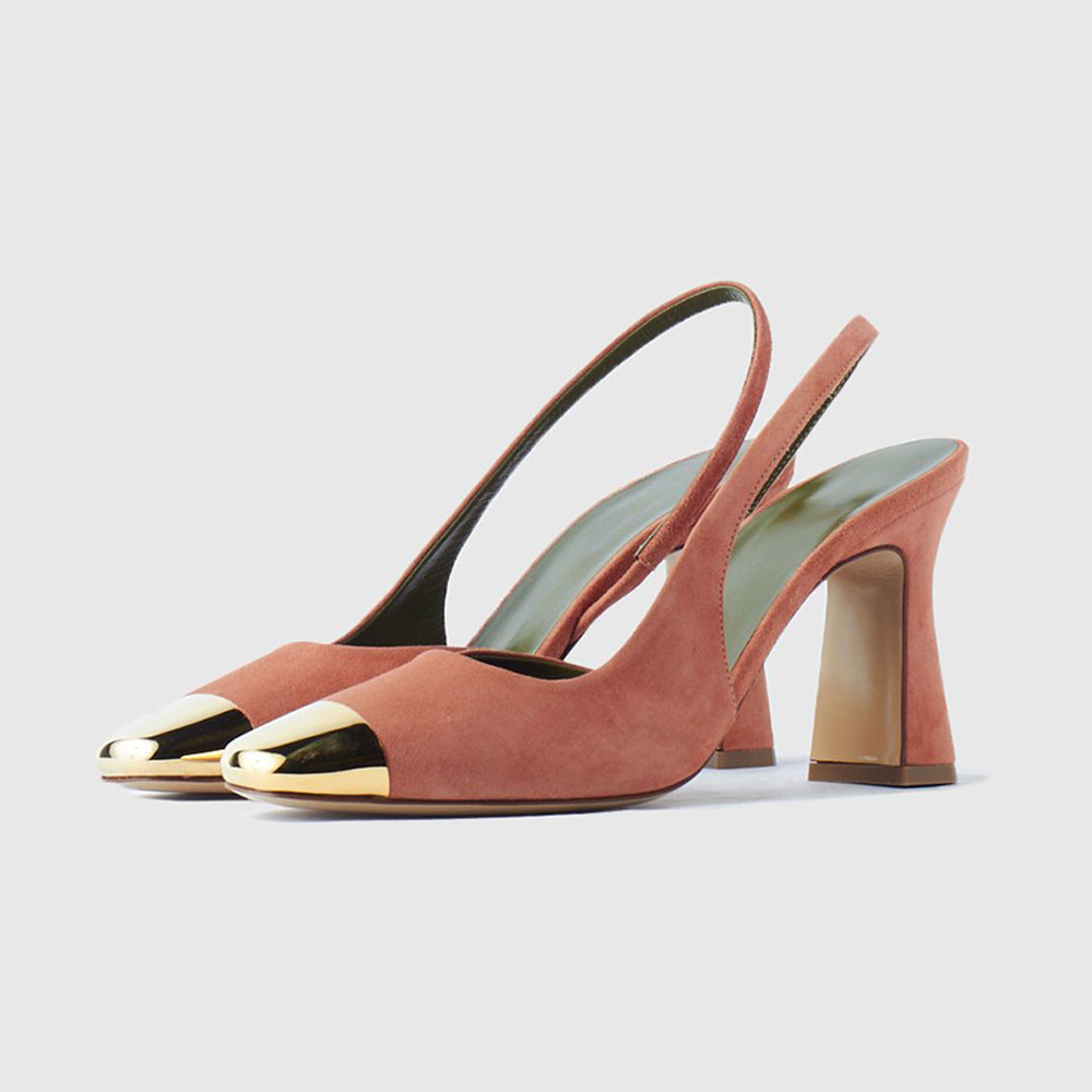 Elegant Vegan Suede Metal Cap Square Toe Slingback Heels in Pink