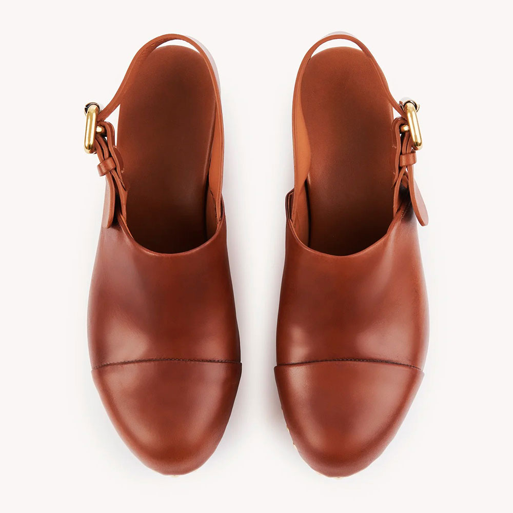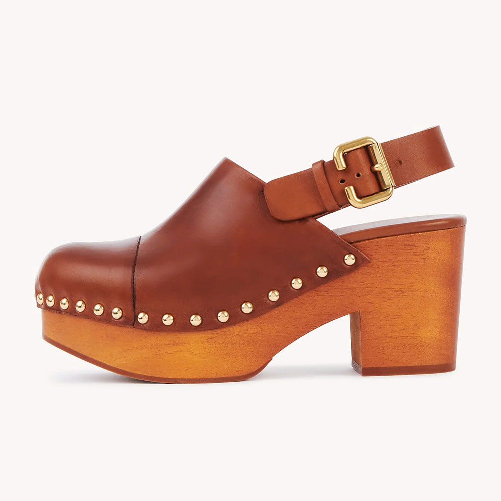 Tan Studded Block Heel Platform Clogs Slingback Pumps for Women