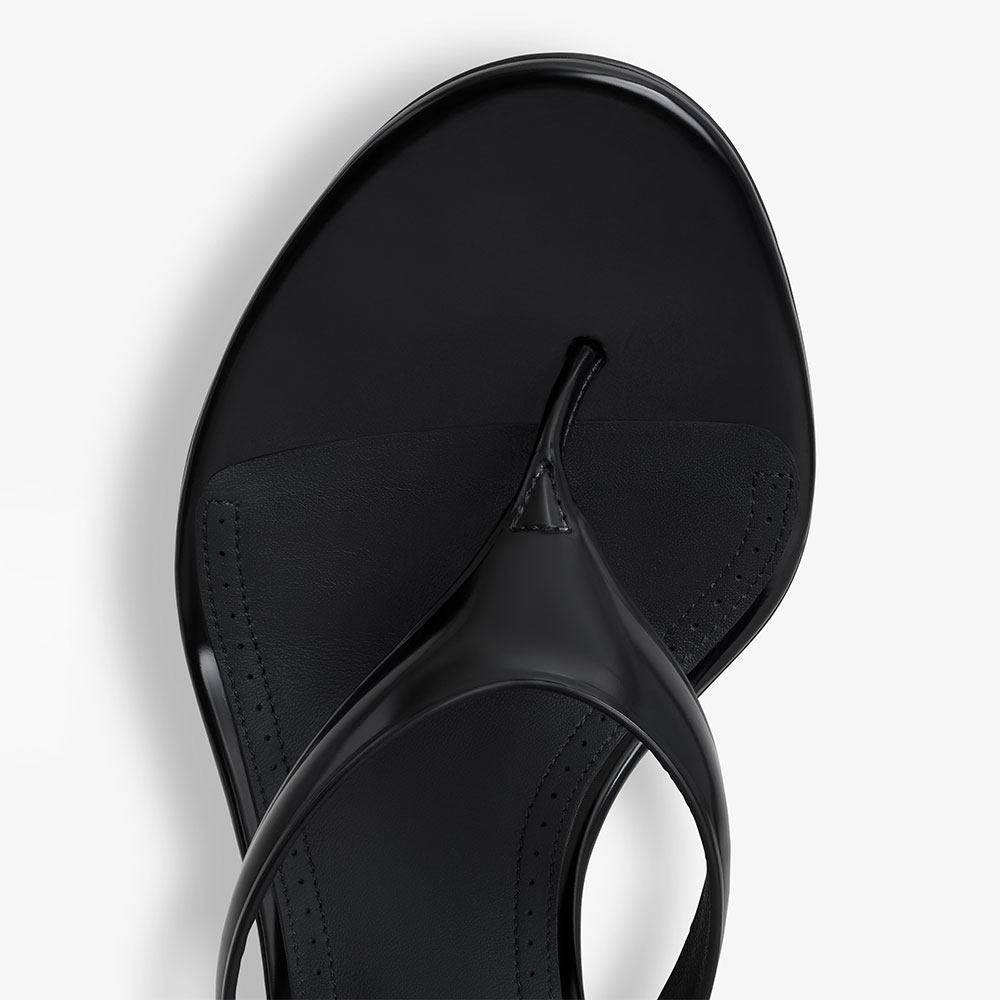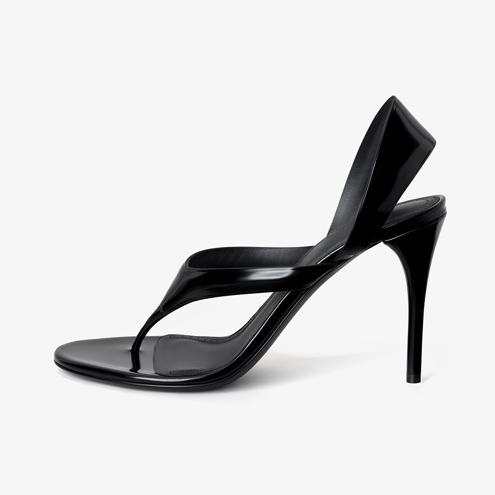 Patent Leather Open Toe Slingback Flip Flop Black Heels Sandals