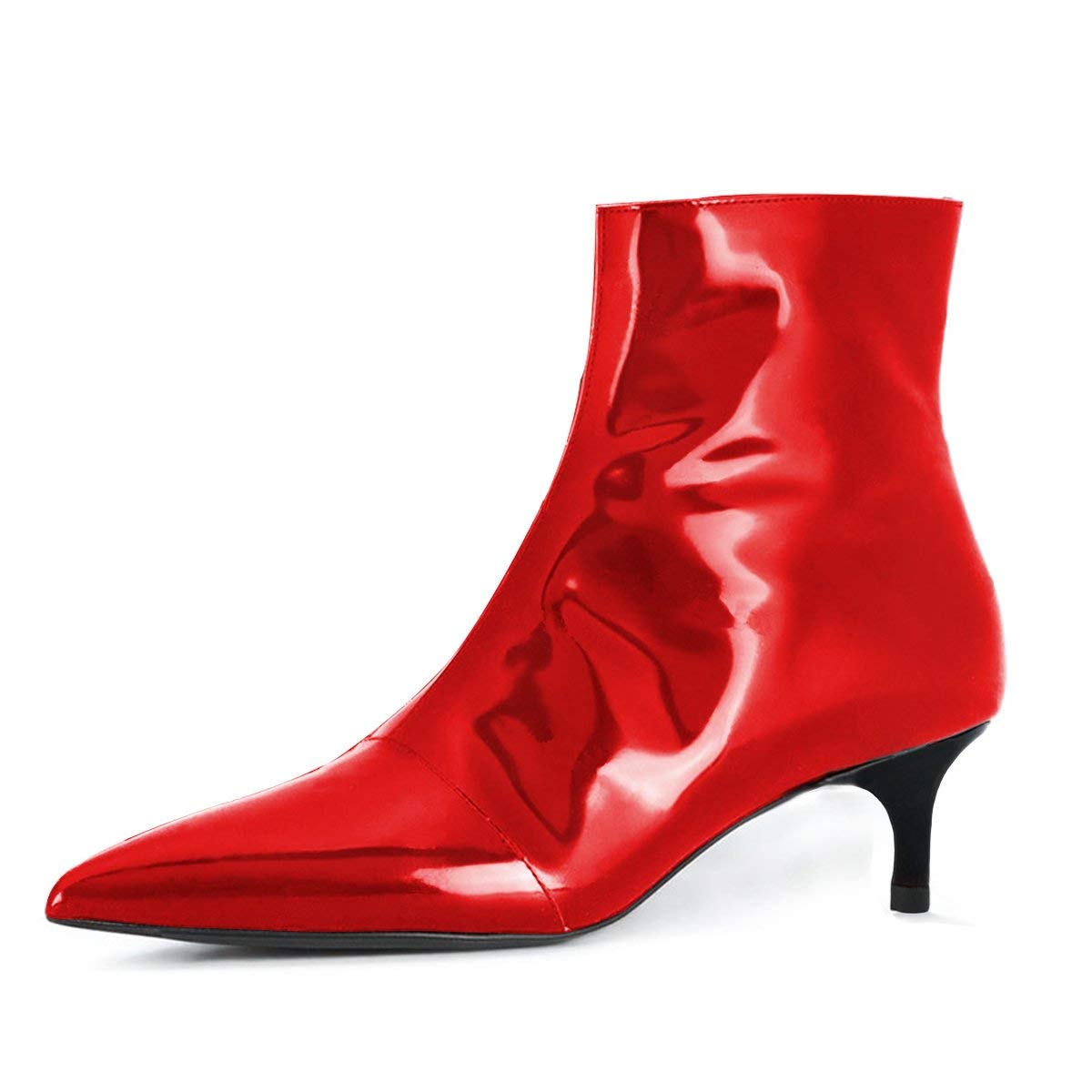 Patent Leather Pointed Toe Kitten Heel Classy Ankle Boots in Red