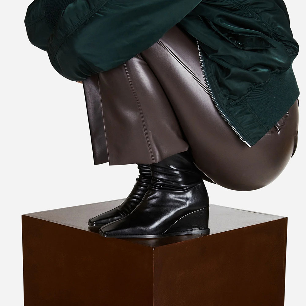 Special Designs: The Boots feature a square toe, a side zipper, and a wedge heel design.