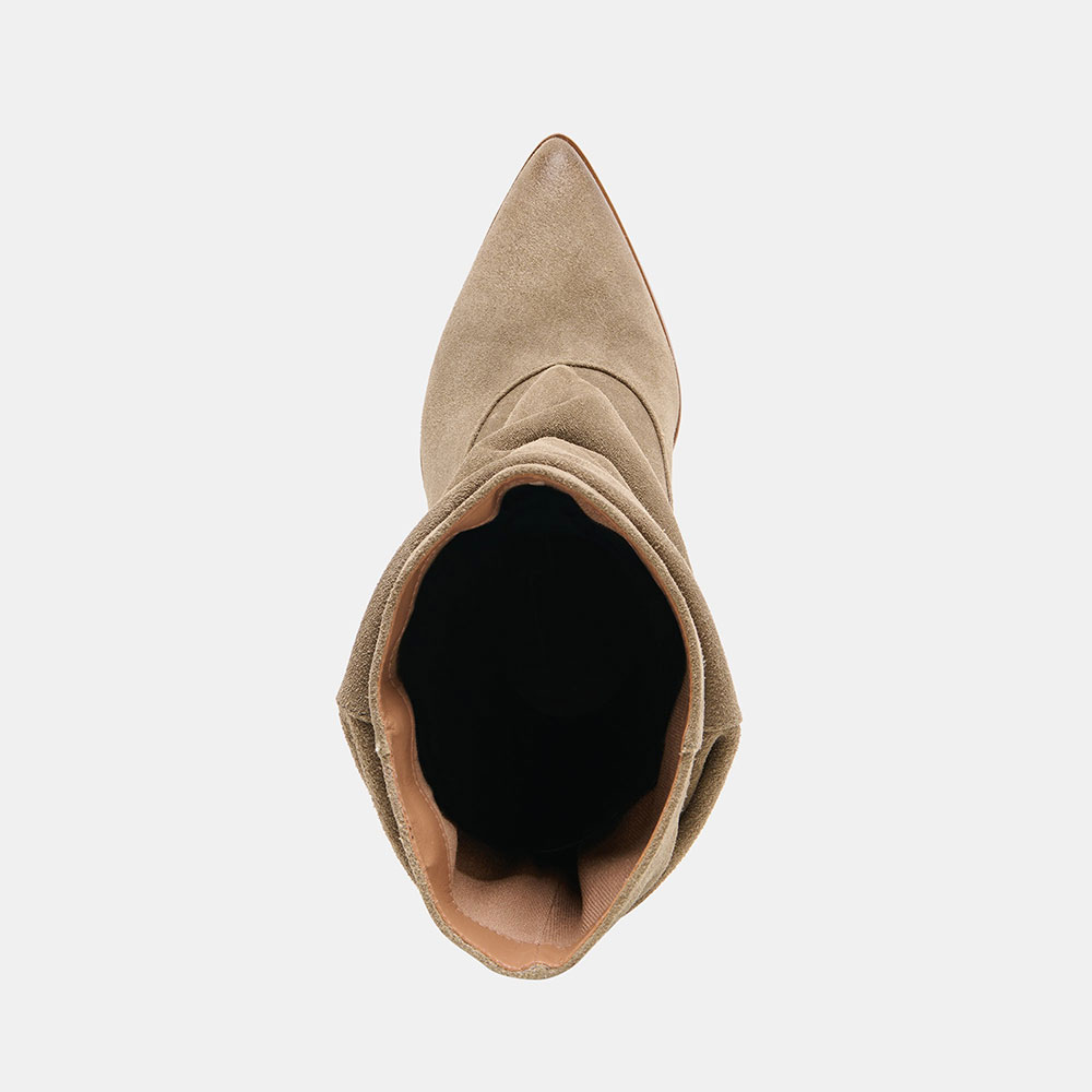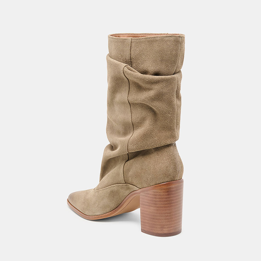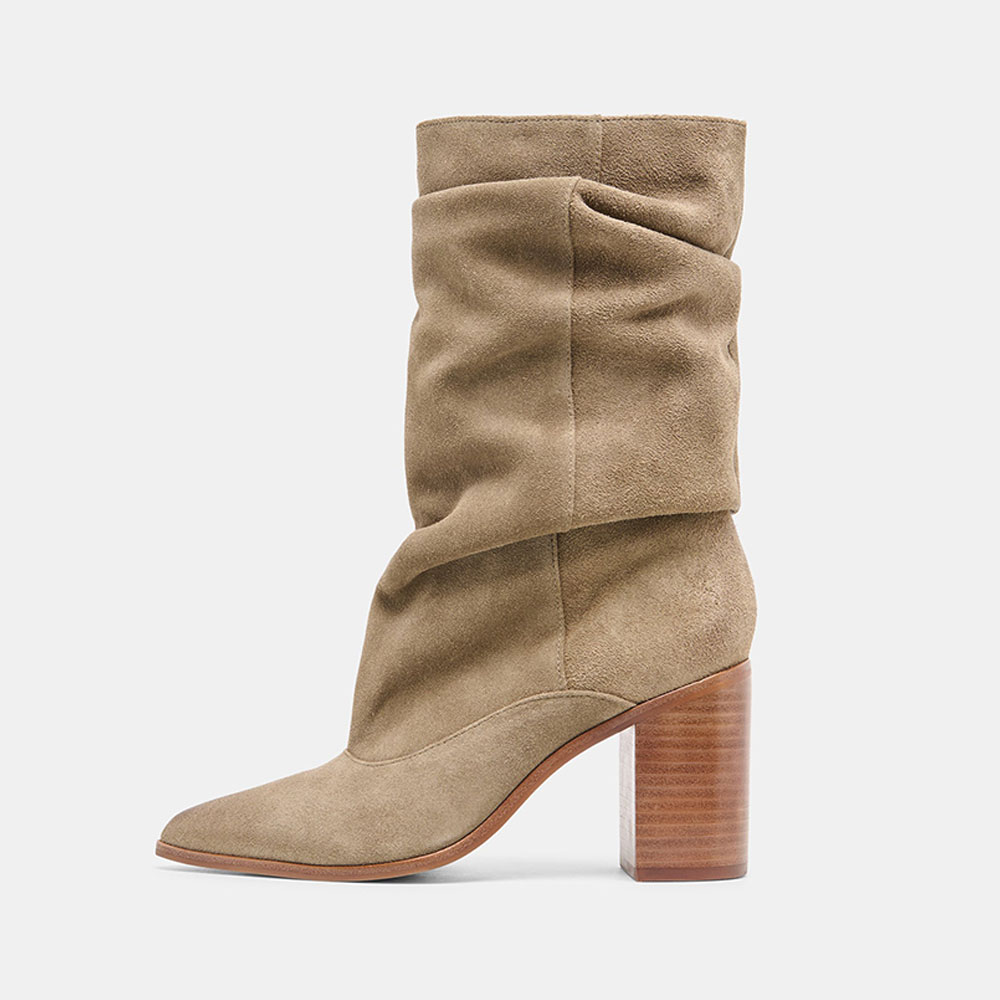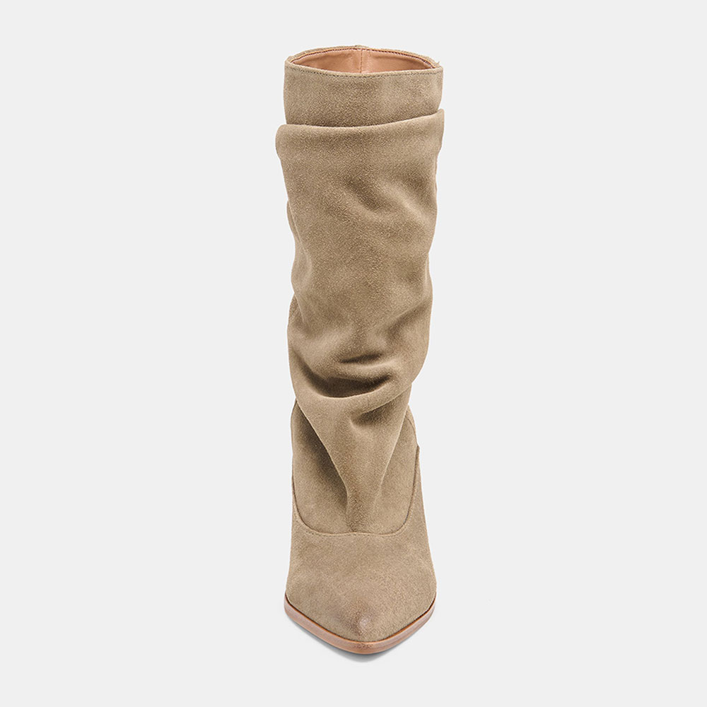 Slouchy Mid Calf Taupe Slip On Pointed Toe Boots for Women