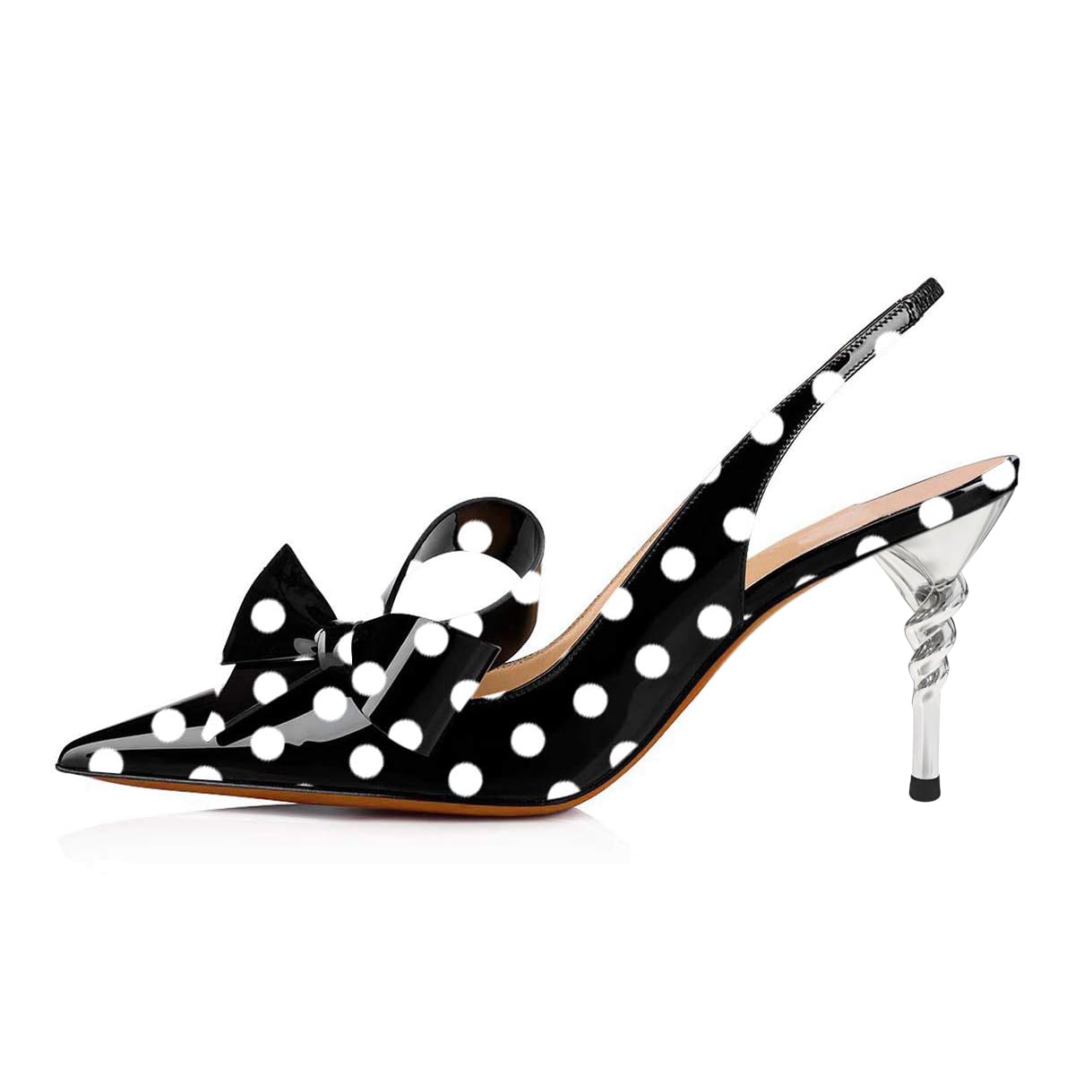 Special Designs: The pointed-toe slingback heels feature elegant bow decoration and a polka dot design.