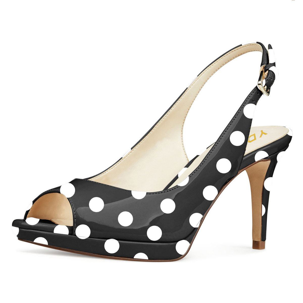 Black & White Polka Dot Patent Leather Platform Slingback Sandals