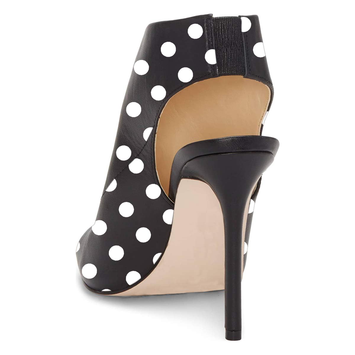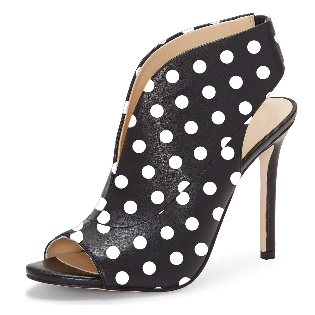 Black & White Polka Dots Peep Toe Slingback Stiletto Heeled Sandals