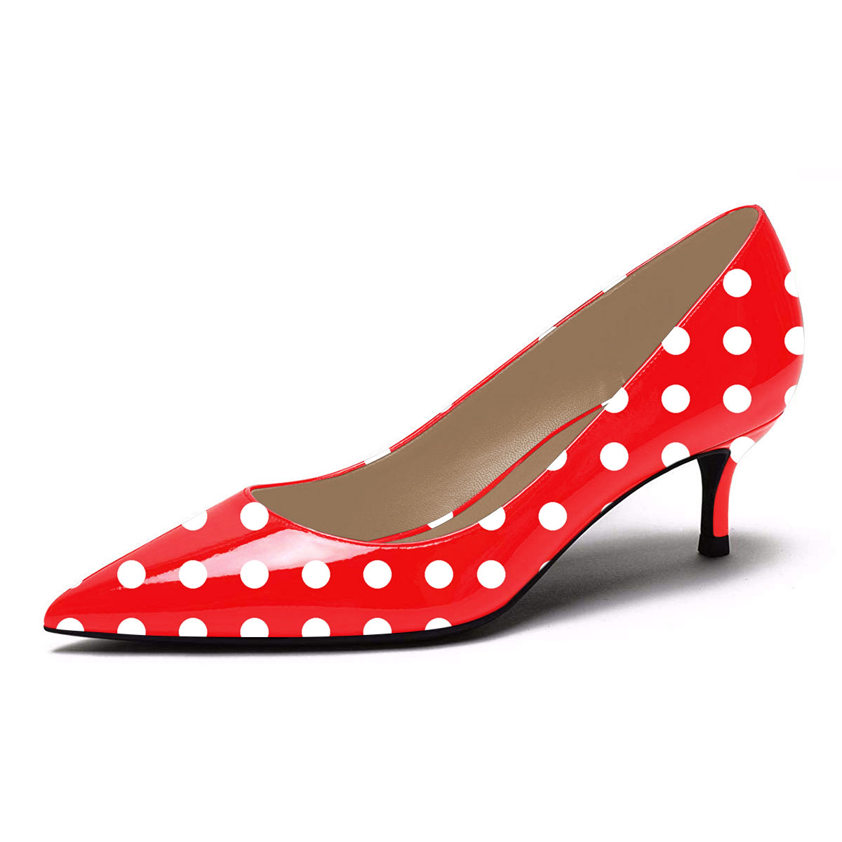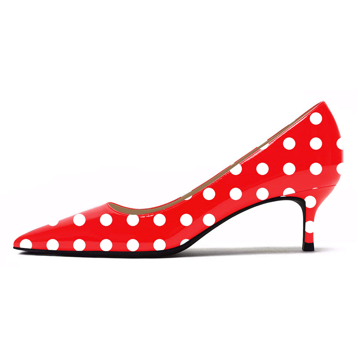 Red Patent Leather Polka Dot Pointed Toe Kitten Heel Pumps for Women