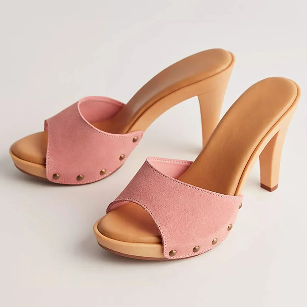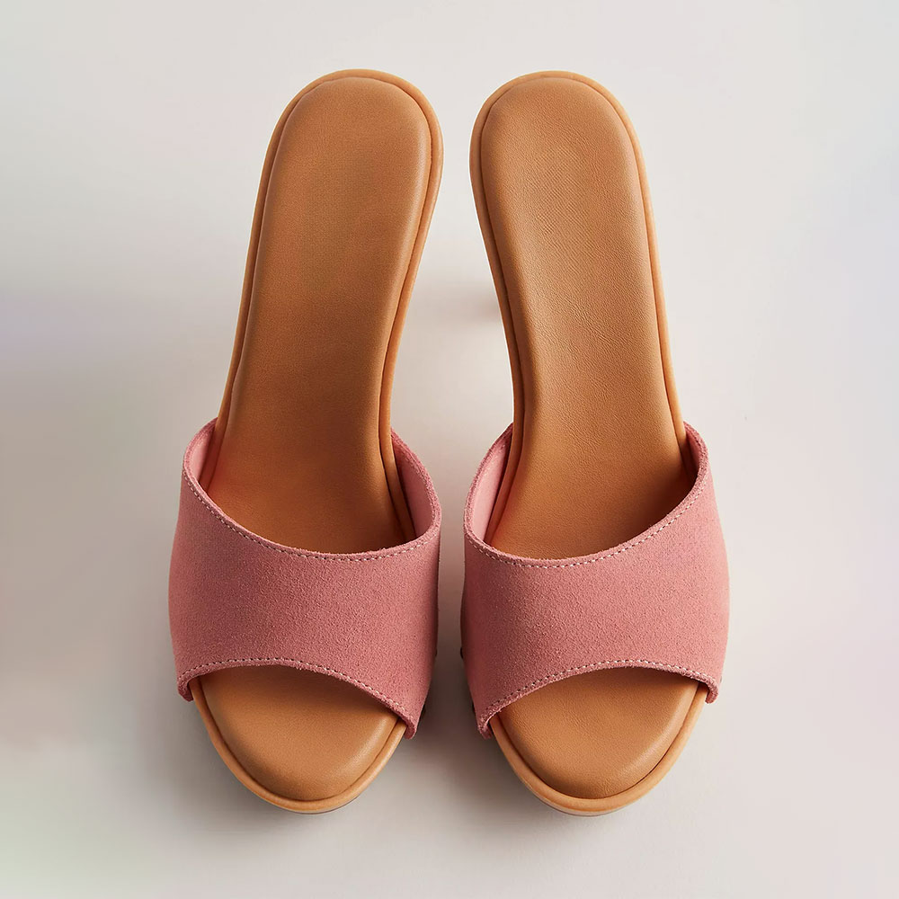 • Special Designs: These mules feature a round toe, a slip-on, a high heel, a cute pink color, and a wide strap design.