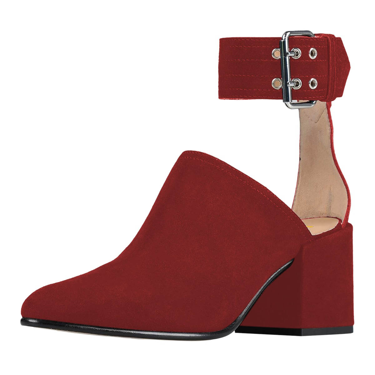 Almond Toe Block Heeled Ankle Strap Buckle Red Pumps for Women