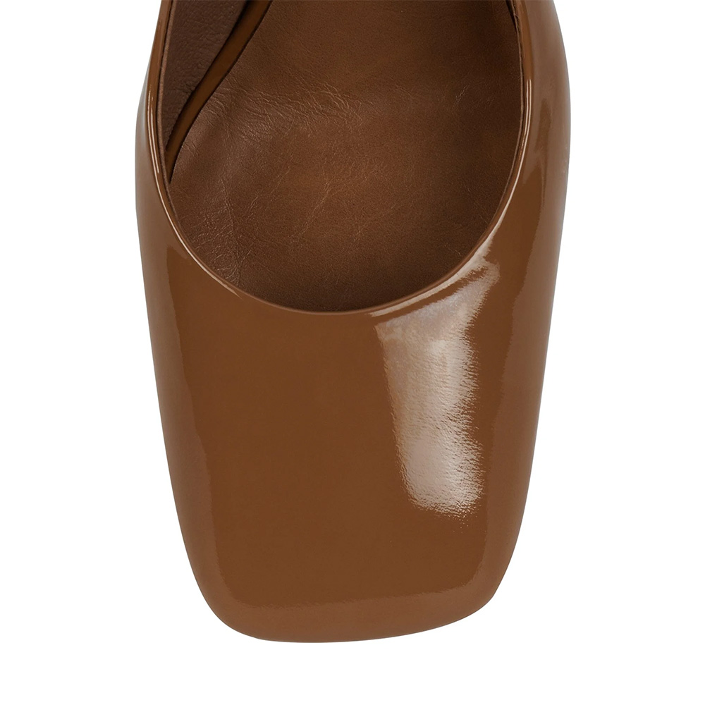 Patent Leather Beige Platform T-Strap Sandals with High Heels