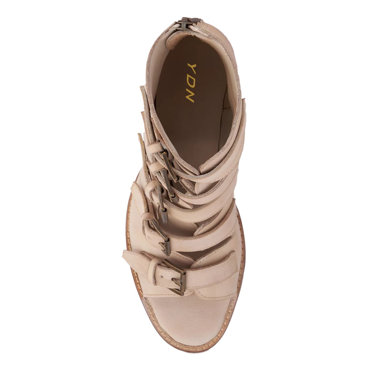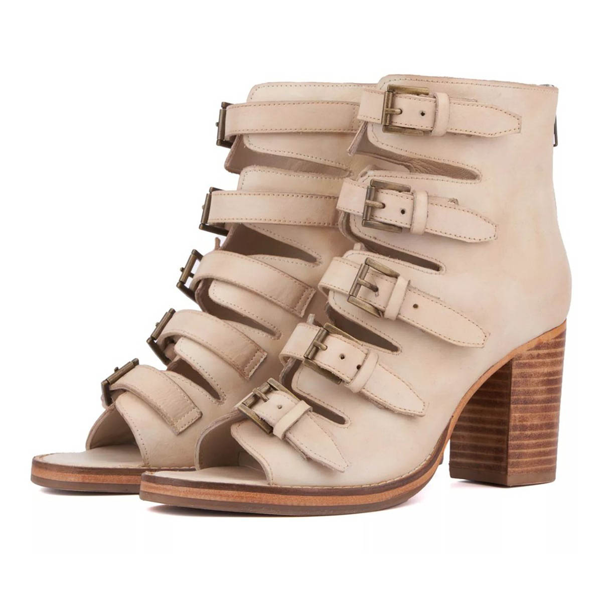 Beige Hollow-Out Peep Toe Chunky High Heels Sandals with Buckle