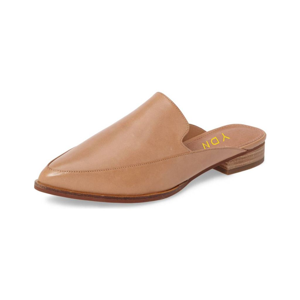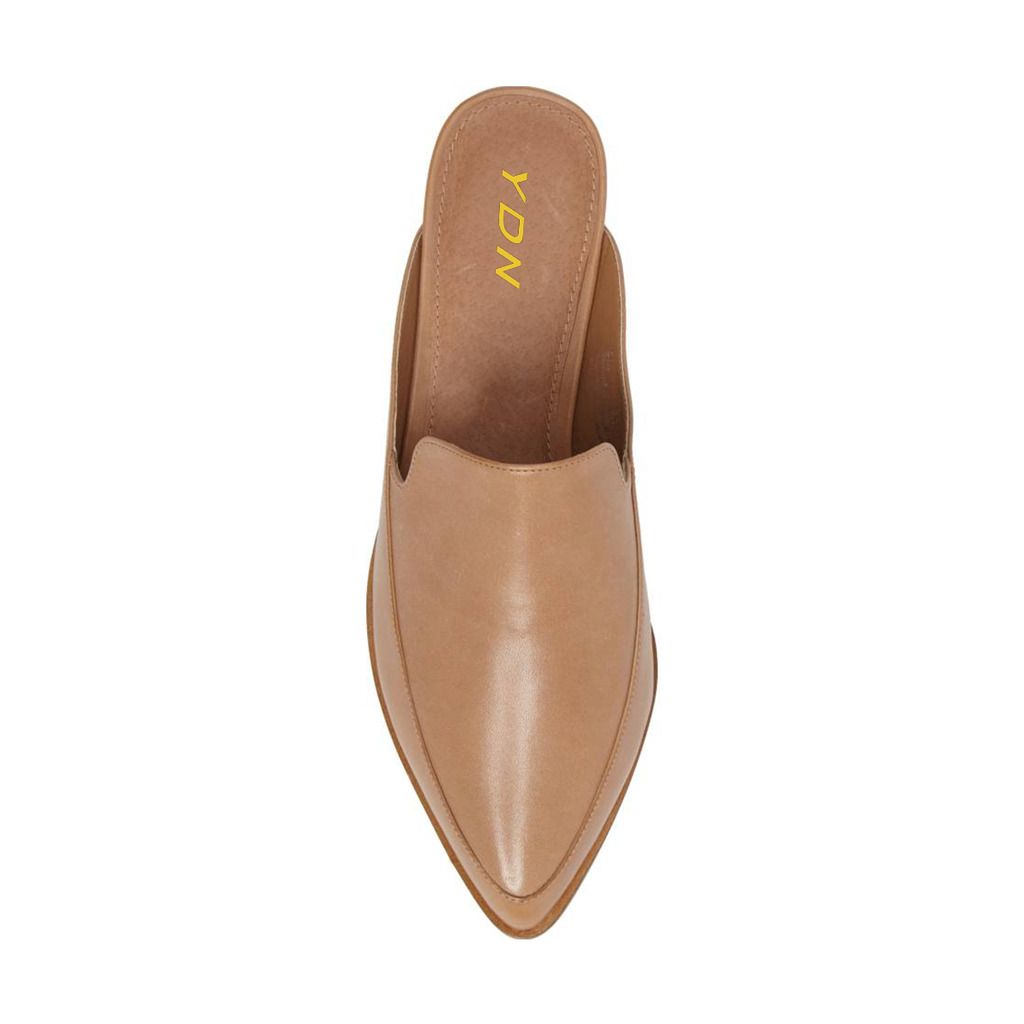 Beige Patent Leather Pointed Toe Flat Slip-On Mules for Women