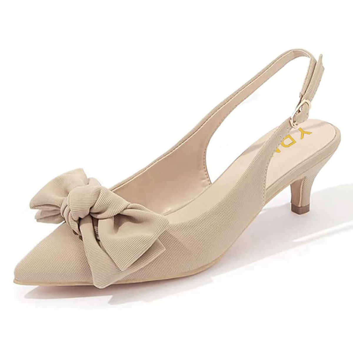 Special Designs: The slingback kitten heel pumps feature a pointed toe and a bow decor on the vamp.