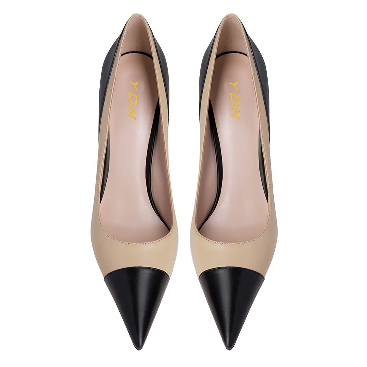 Black and Beige Stiletto Heel Slip-On Pointed Toe Pumps Shoes