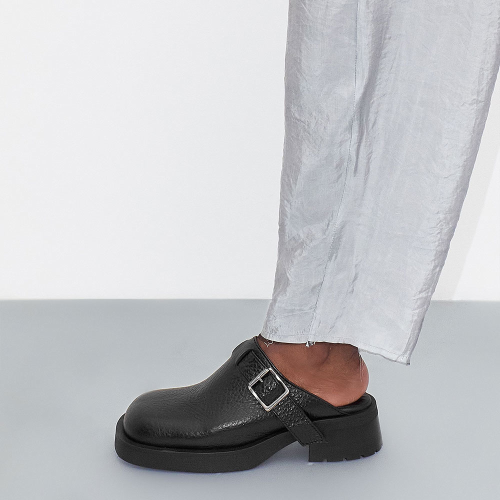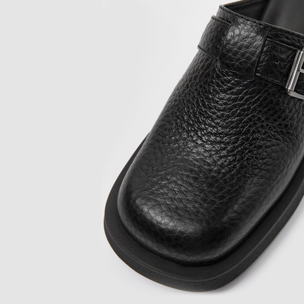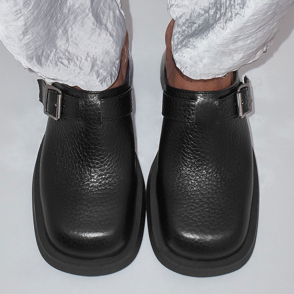 • Special Designs: These mules feature a square toe, an adjustable buckle, and a slip-on design.