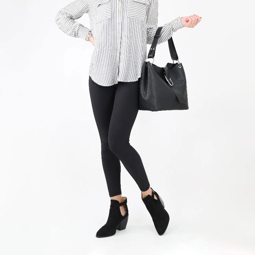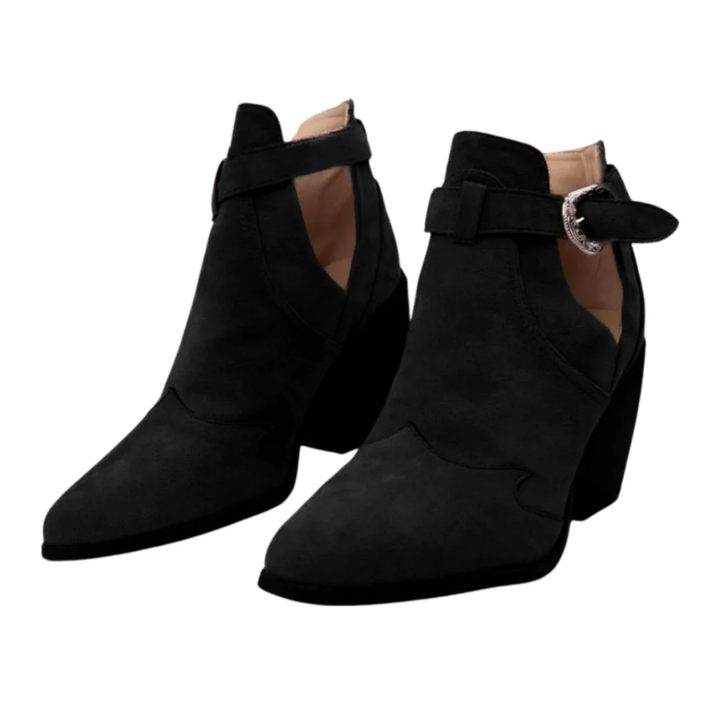 Black Closed Toe Block Heel Cut-Out Buckle Ankle Boots for Women