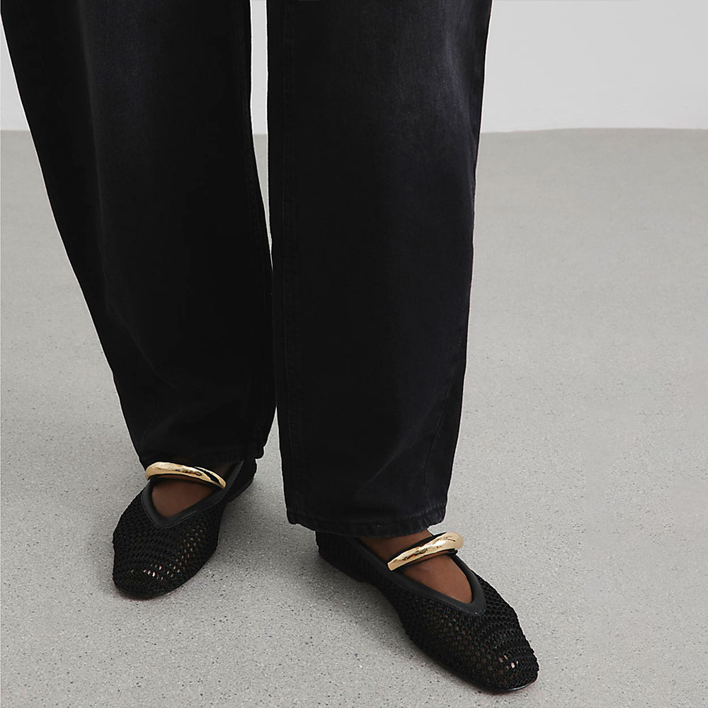 Special Designs: The round-toe flat shoes feature a gold metal decor strap and crochet design.