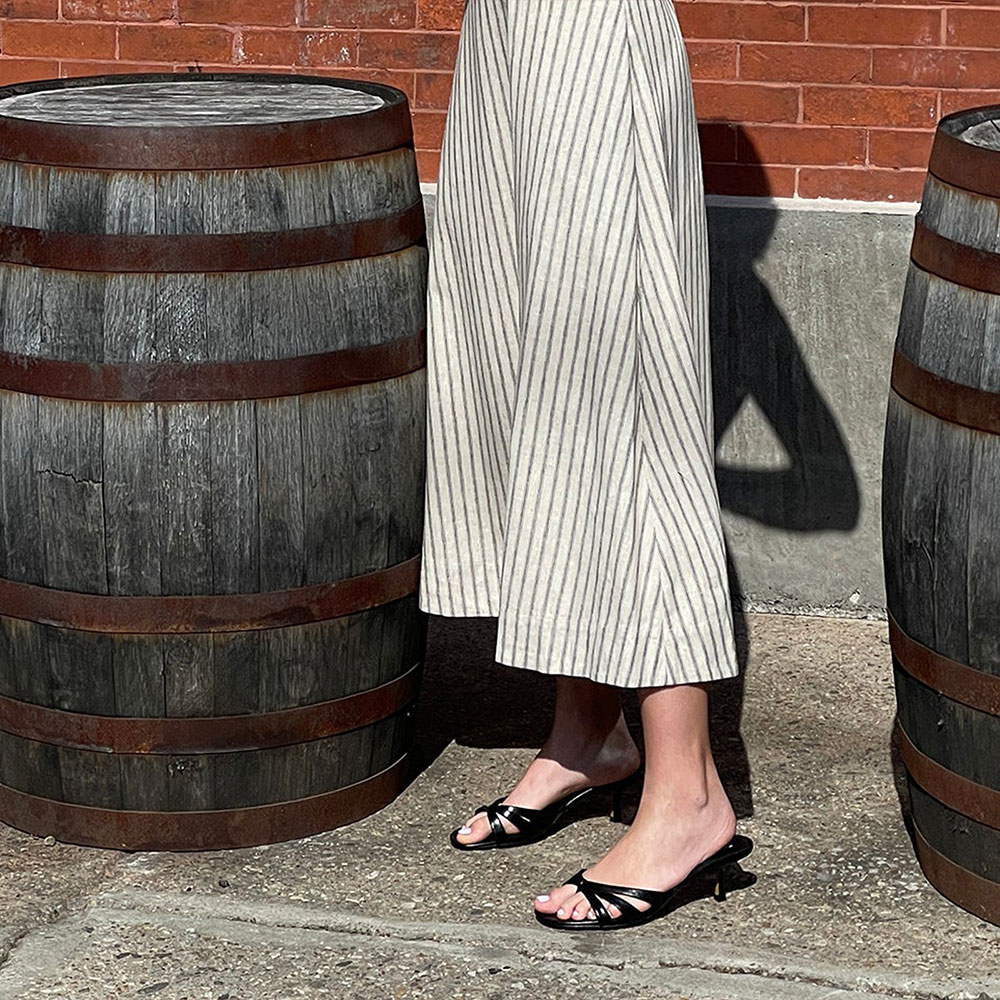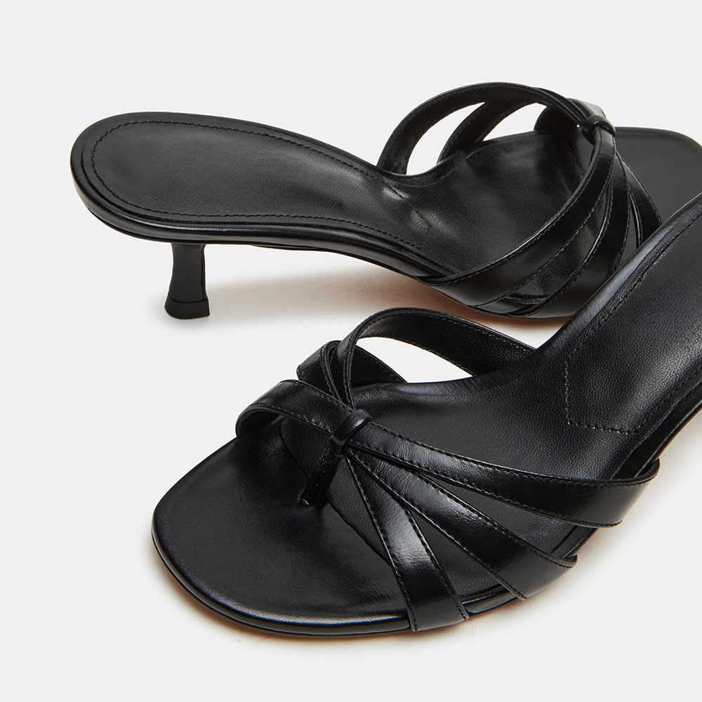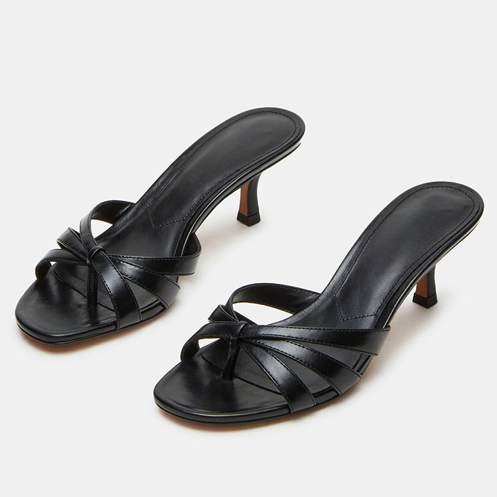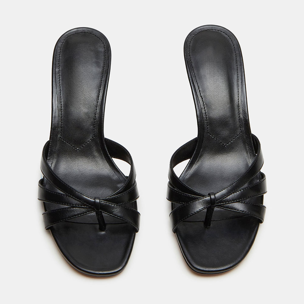 Black Crossed Strap Open Square Toe Spool Heel Slide Sandals Women