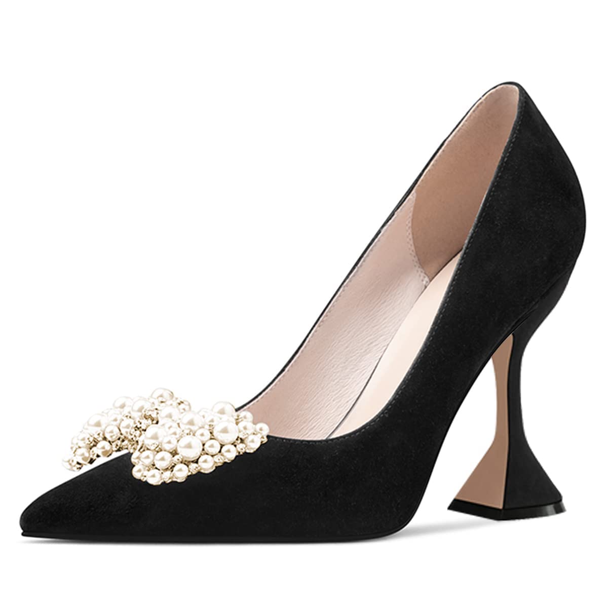 • Special Designs: The black high heel shoes feature a pearl & rhinestone bow decor, flared heels and a pointed-toe design.