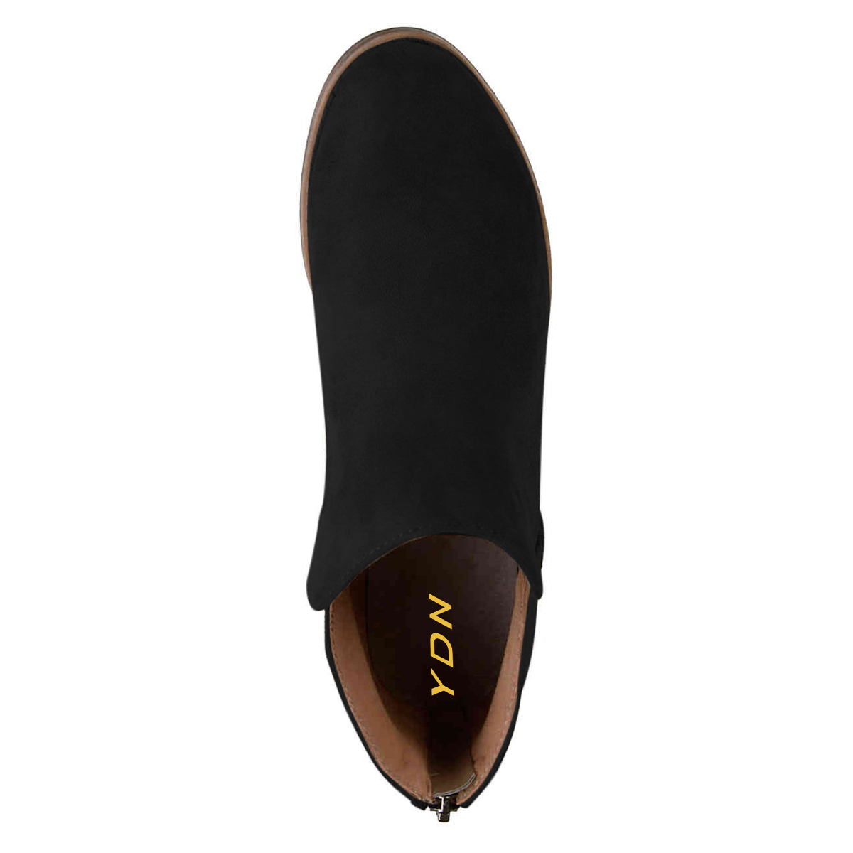 Black Faux Suede Round Toe Back-Zip Comfy Block Heel Ankle Boots