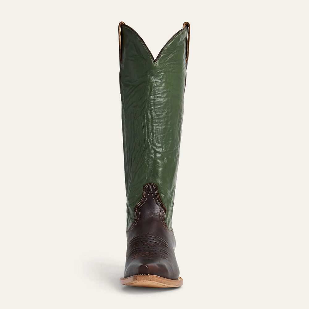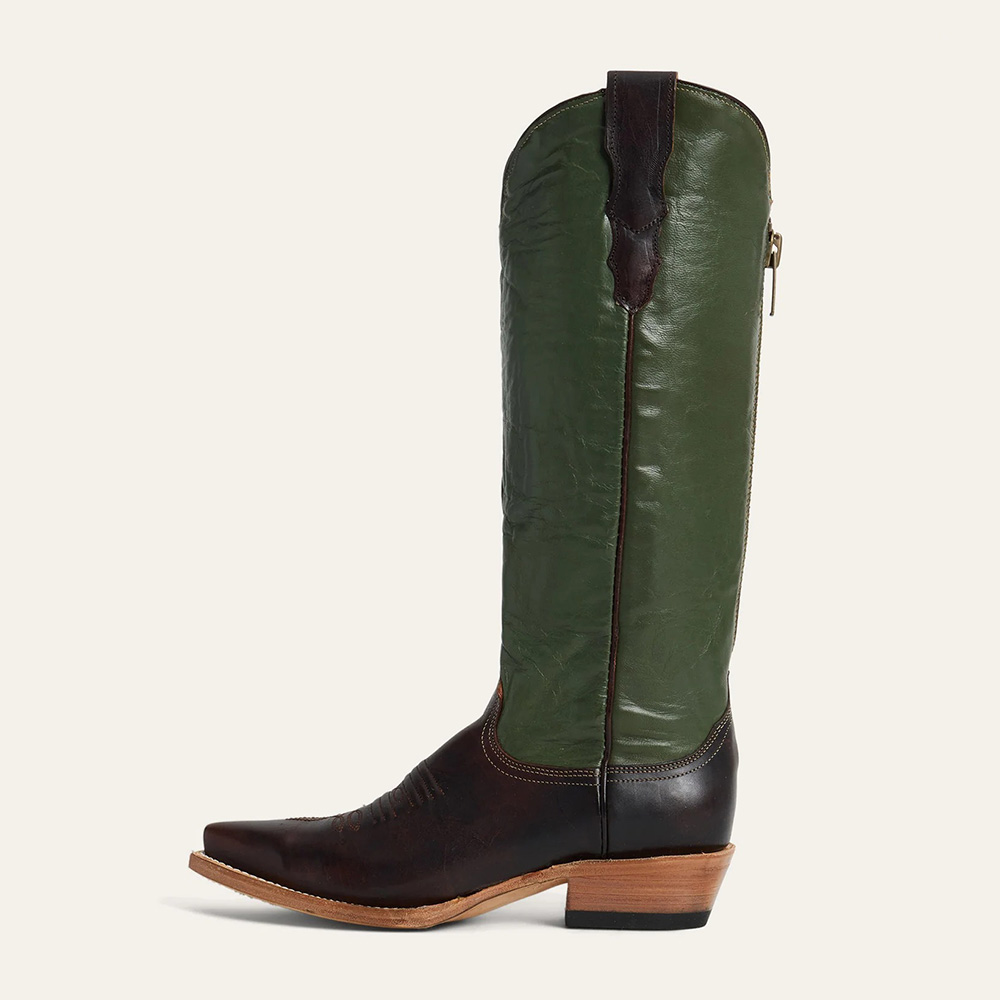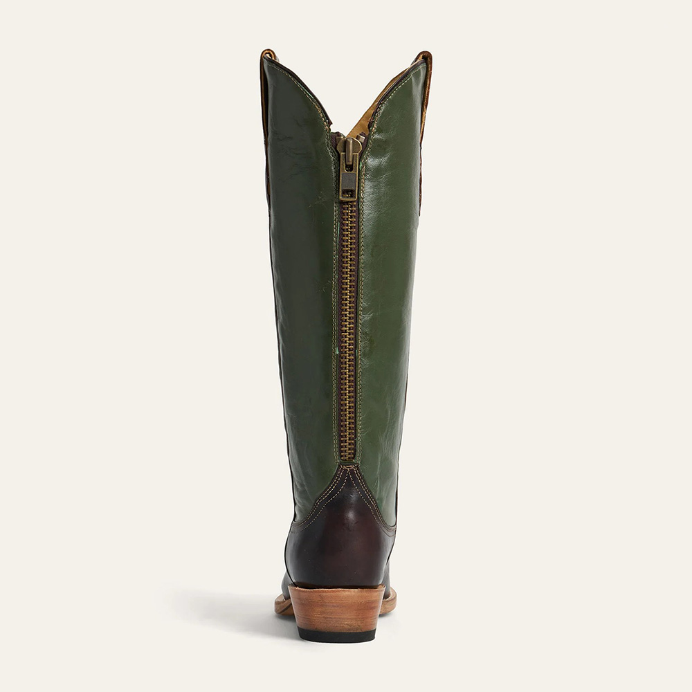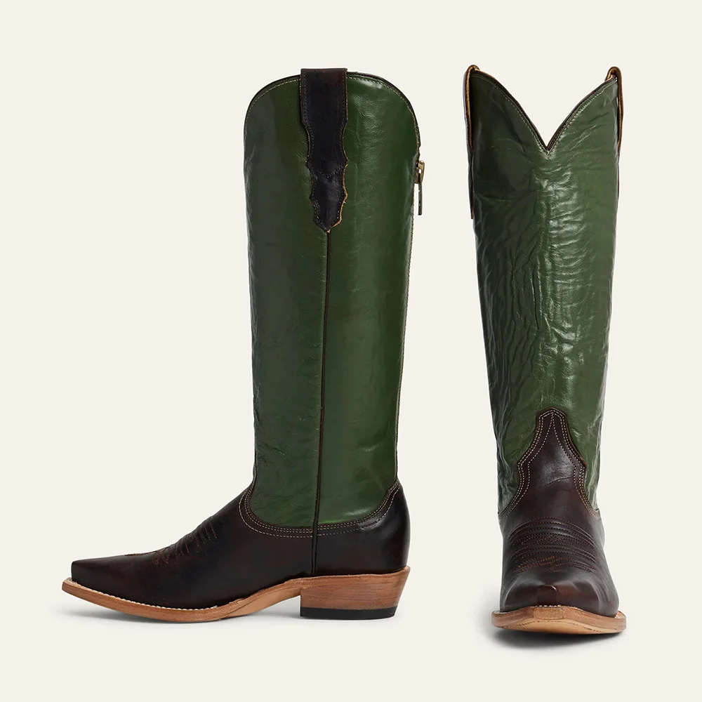 Black & Green Embroidered Knee High Snip Toe Western Boots with Zip