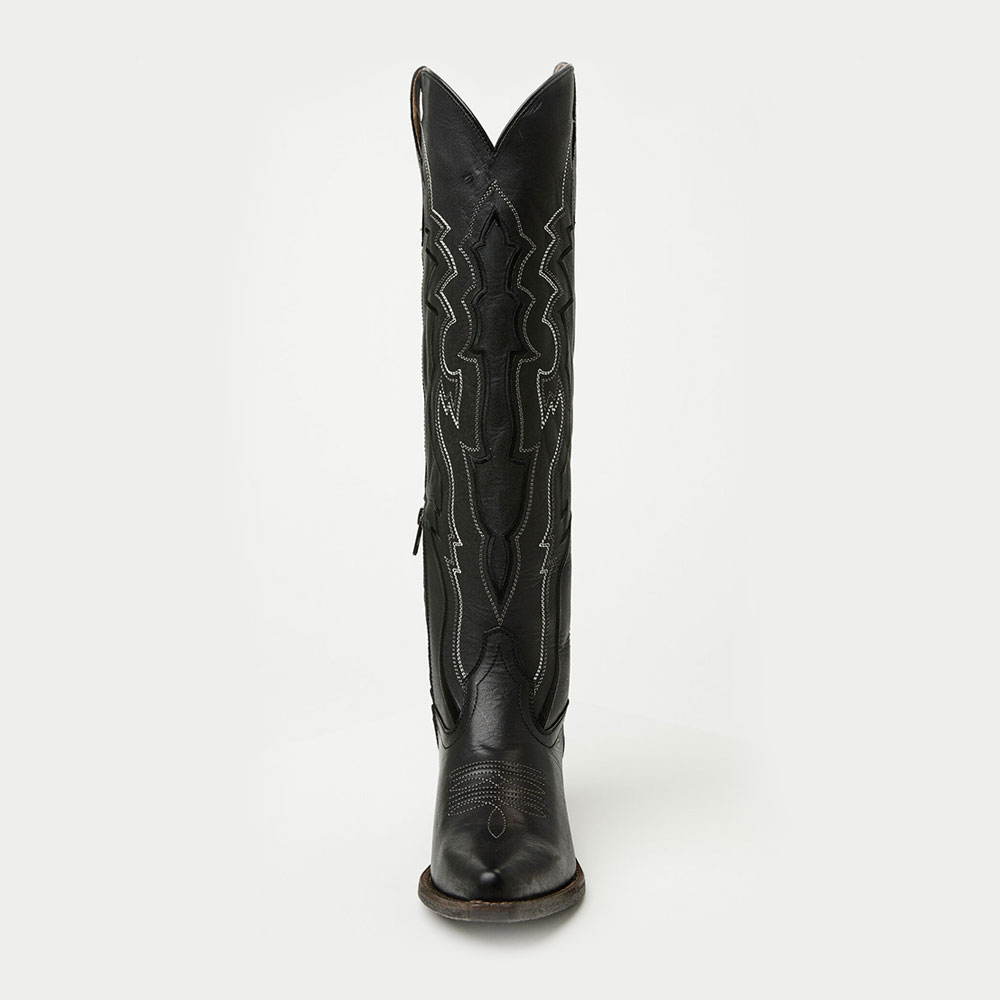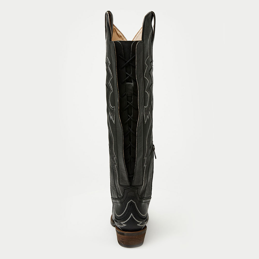 Black Lace-Up Block Heel Knee High Embroidered Cowgirl Boots