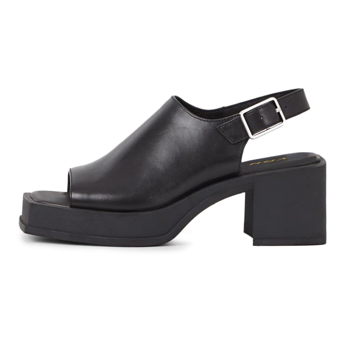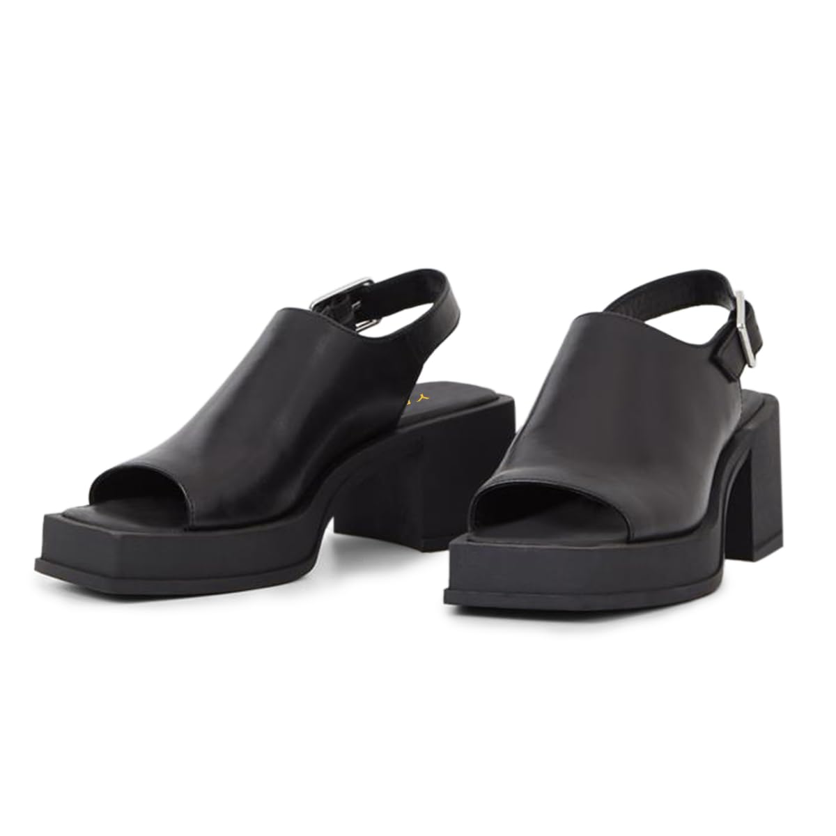 Black Open Square Toe Chunky Heel Slingback Platform Sandals for Women