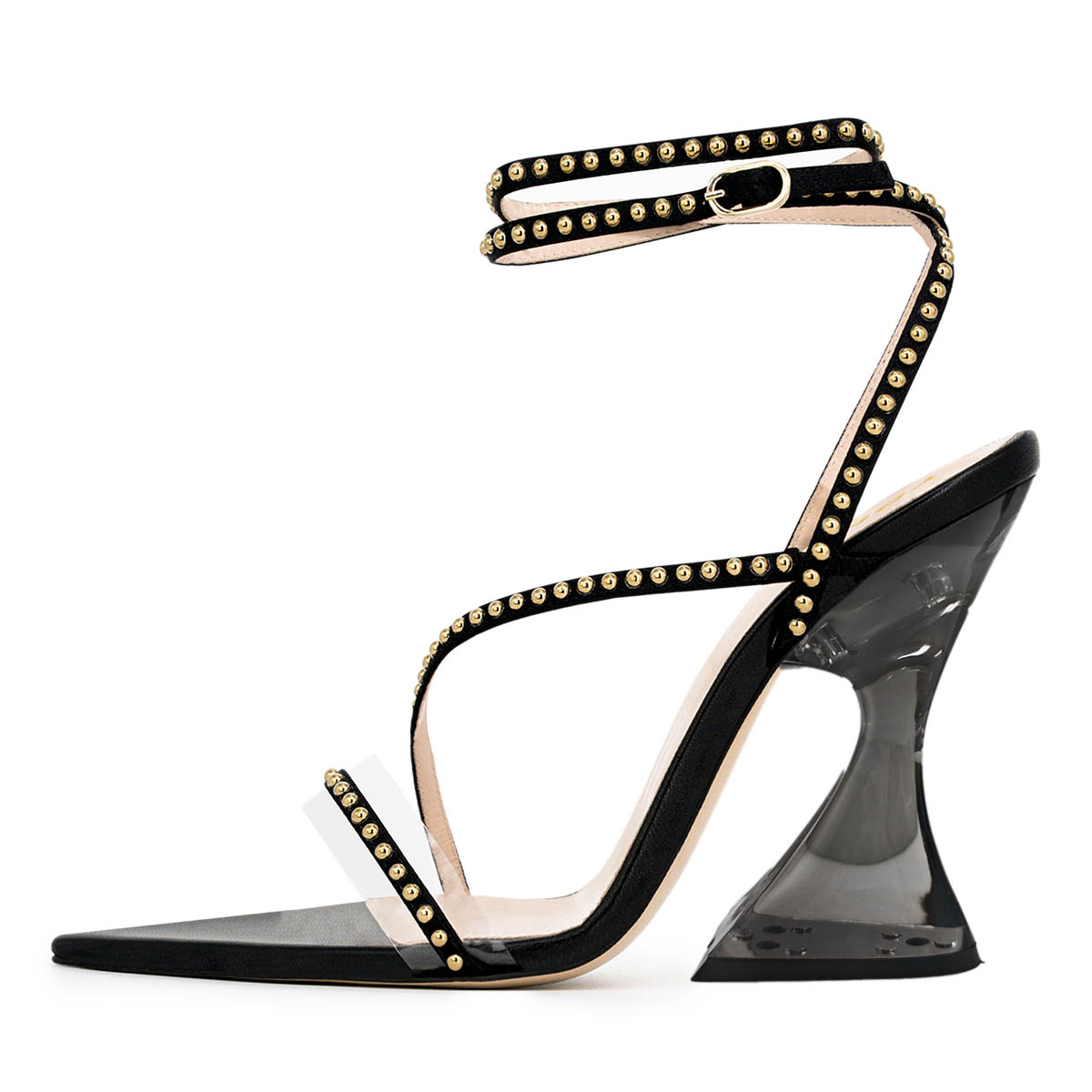Black Open-Toe Studded Ankle Strap Stylish High Heels Sandals