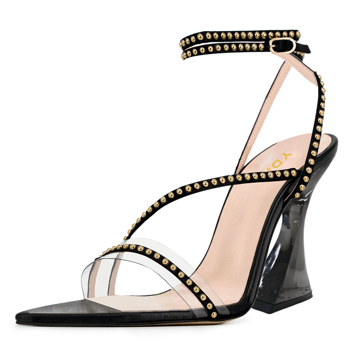 • Special Designs: The open-toe heel sandals feature flared heels and a studded strappy design.