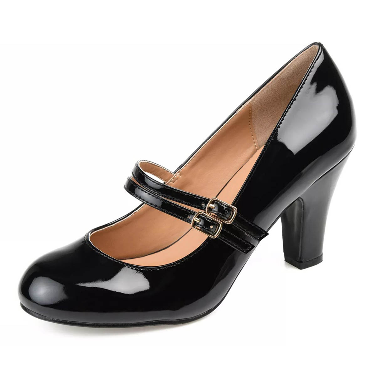 Special Designs: The round-toe heeled Mary Janes feature a double buckle strap closure and a comfortable chunky heel.