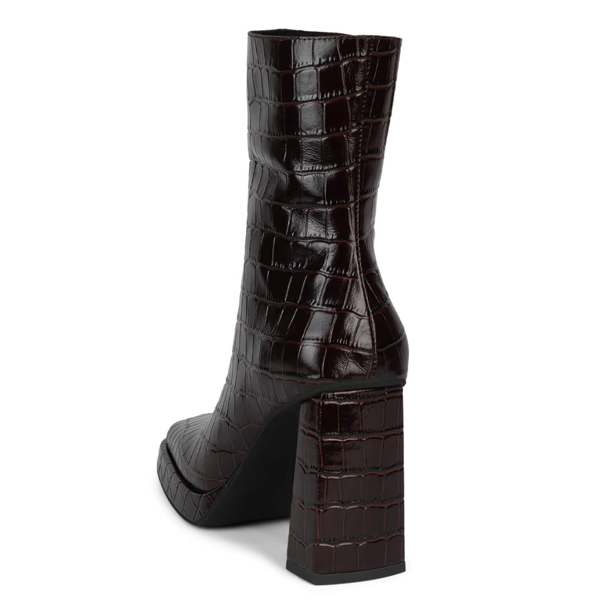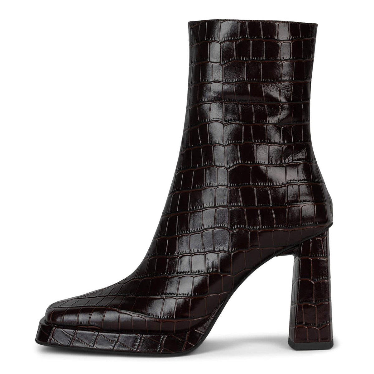Black Patent Leather Croc-Embossed Block Heel Ankle Boots
