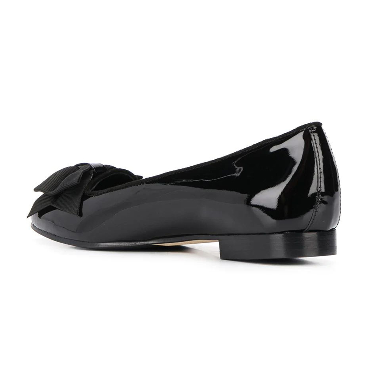 Black Patent Leather Round Toe Slip On Ballet Flats with Bow