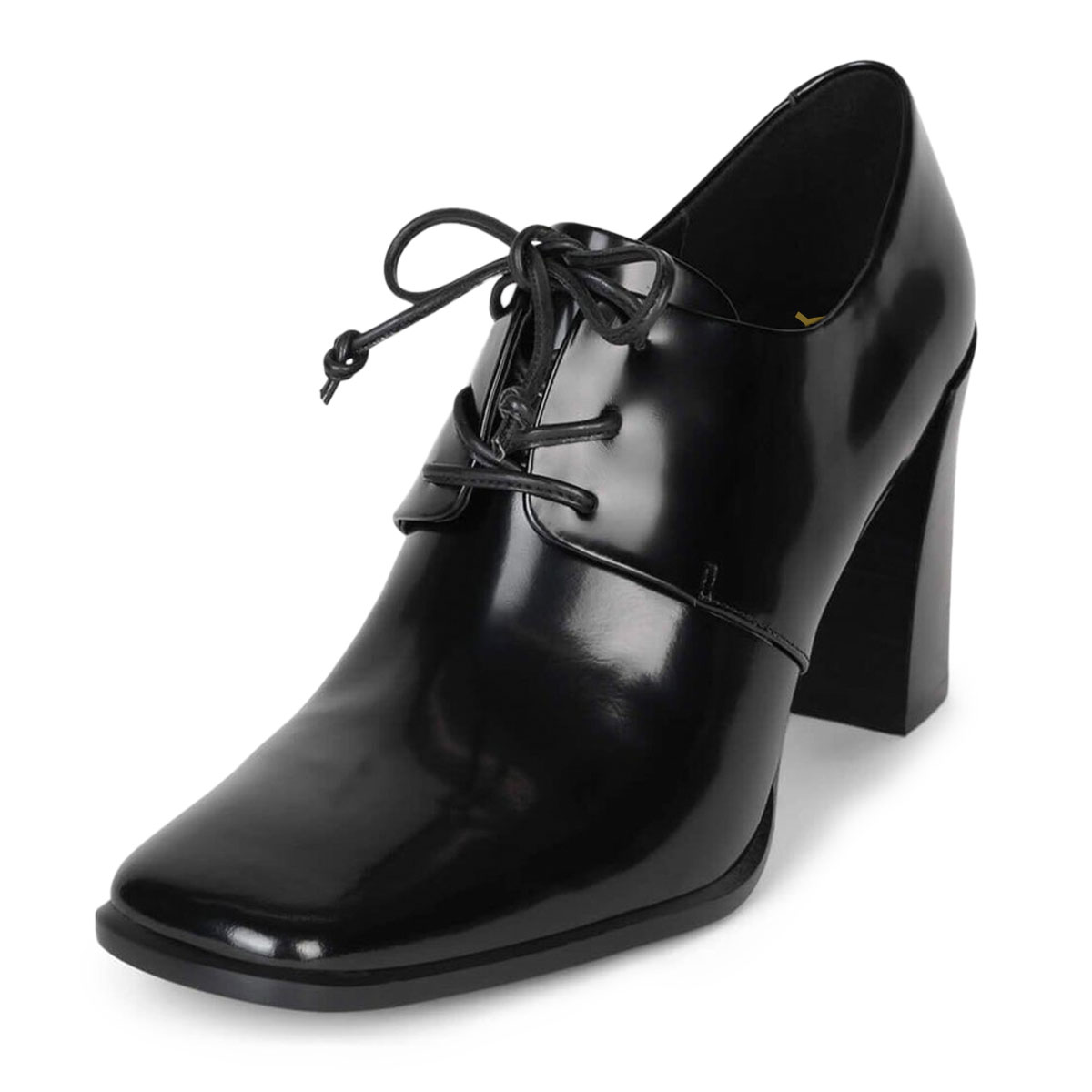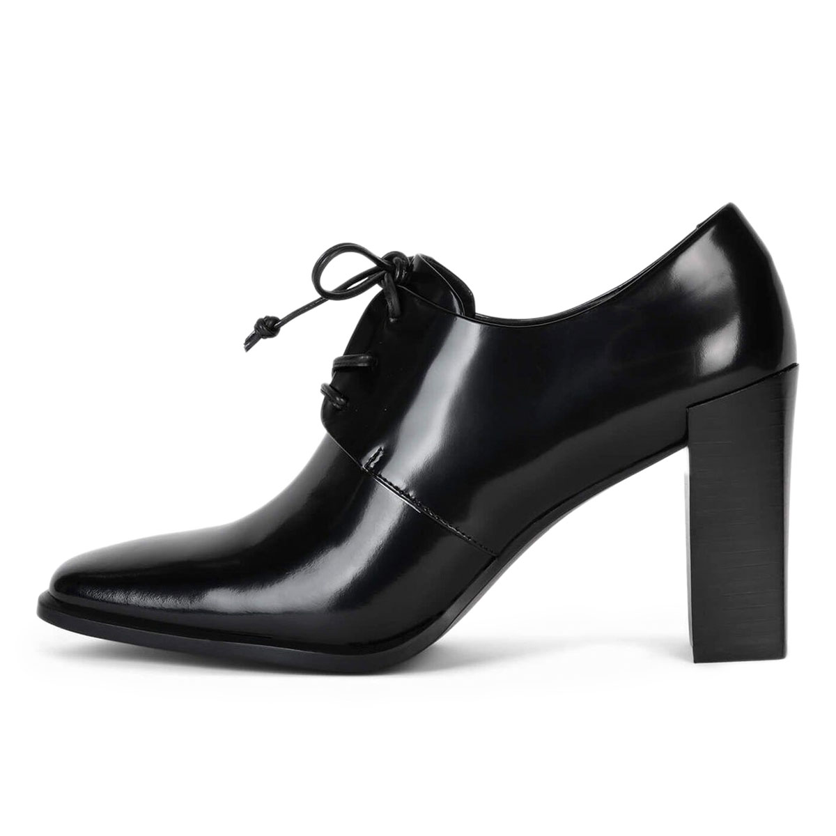 Black Patent Leather Tie-Up Block Heel Square Toe Oxford Shoes Women