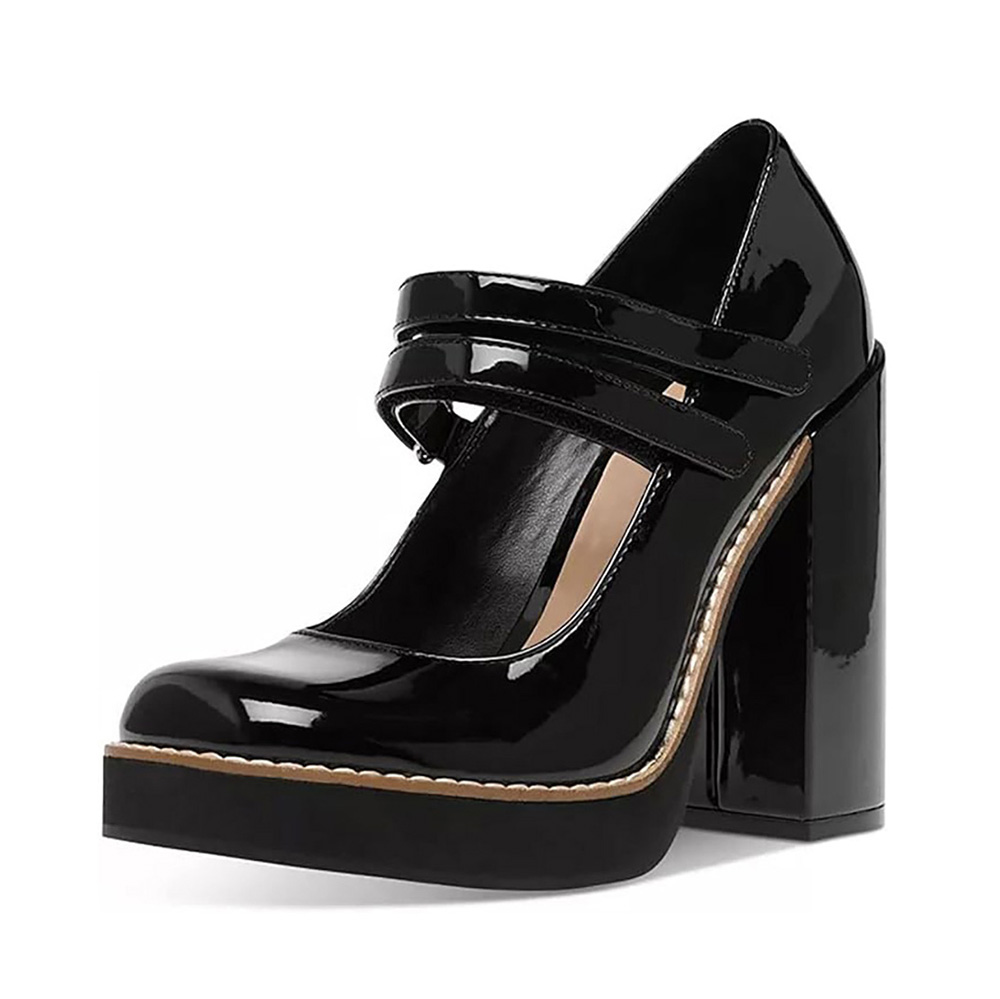Black Patent Leather Velcro Double Strap Platform Mary Janes