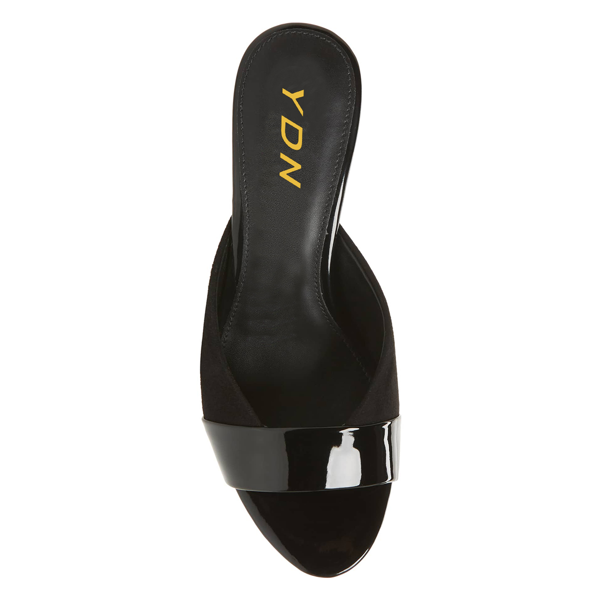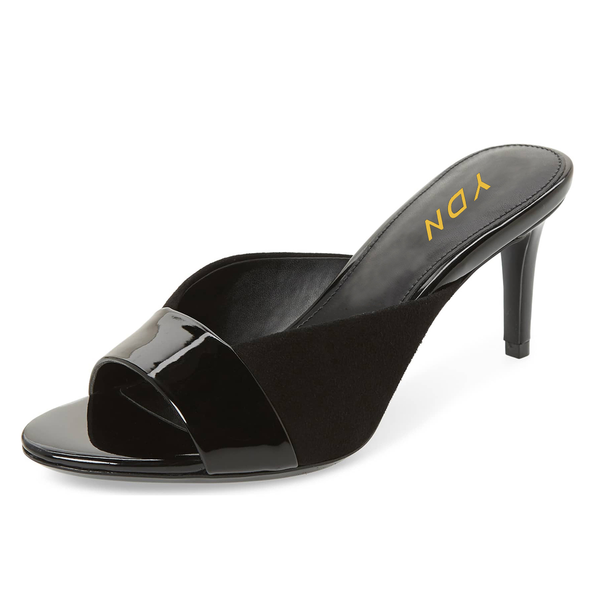 Black Patent Leather Wide Band Mules with Stiletto Heels for Ladies
