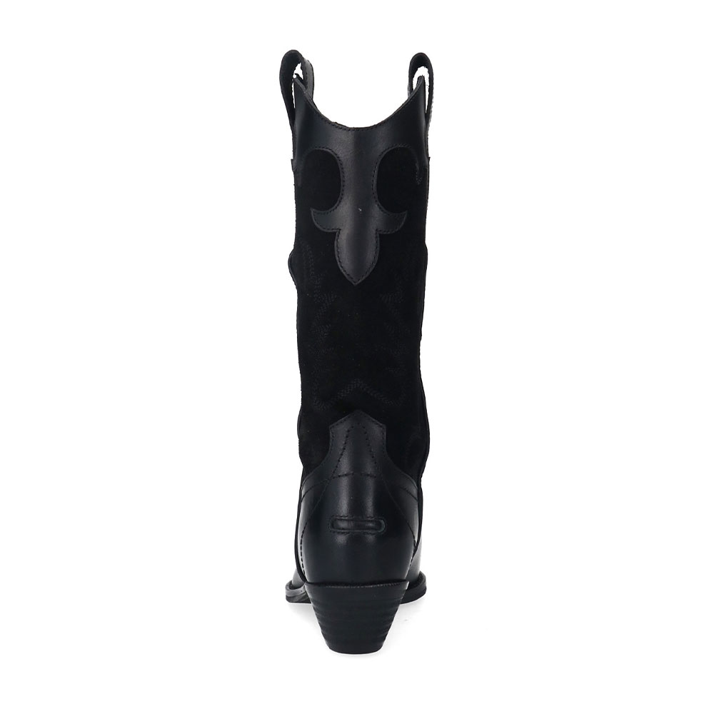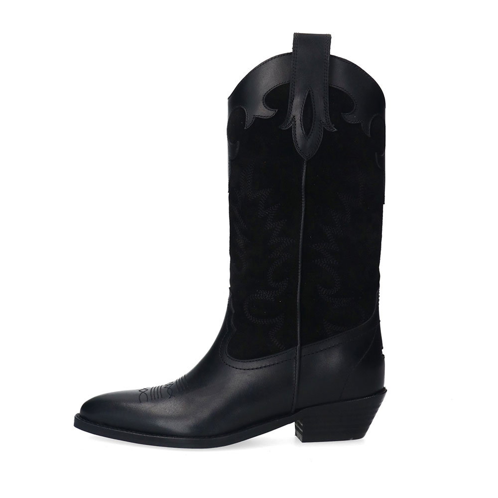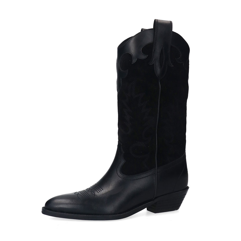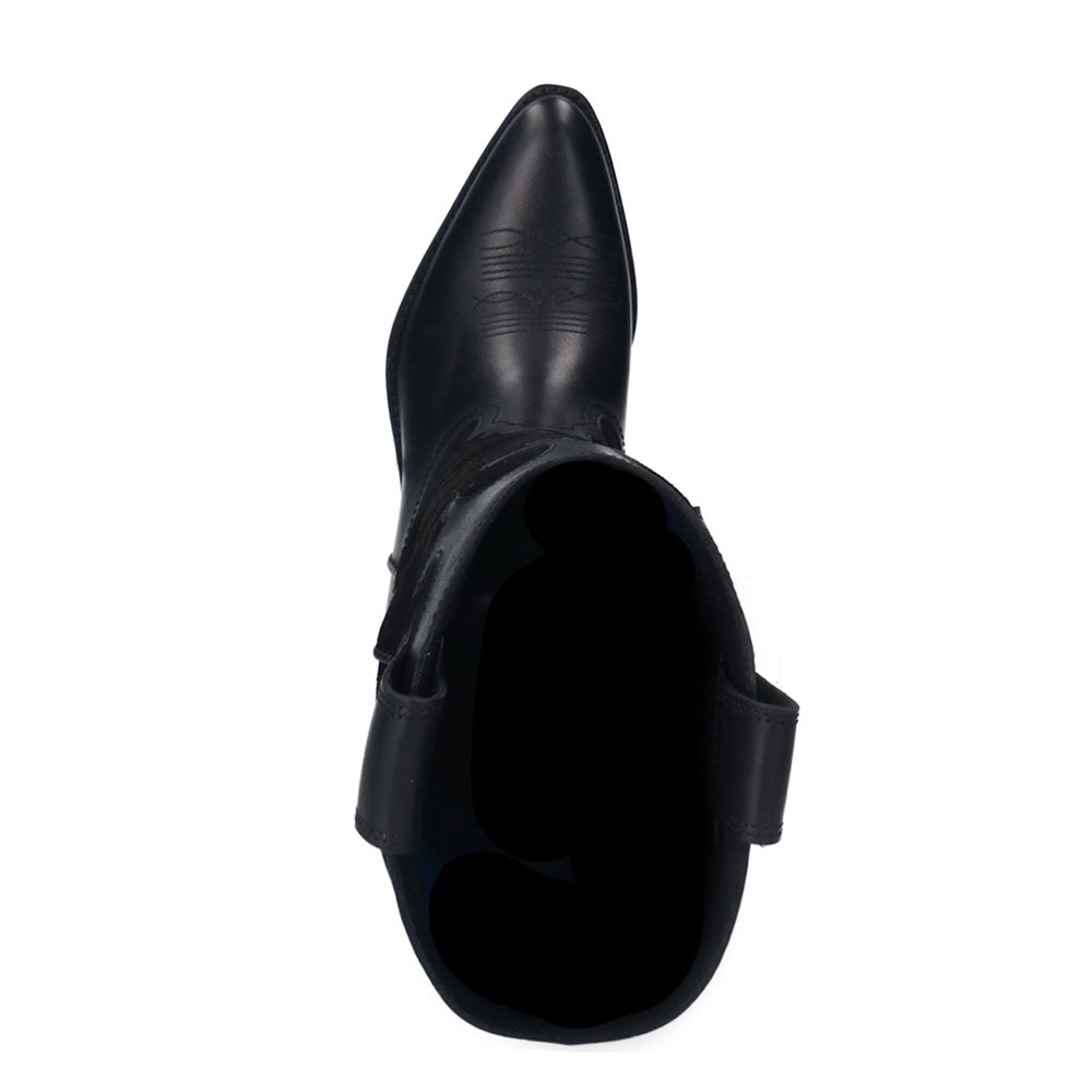 Black Pointed Toe Chunky Heel Pull On Embroidered Cowgirl Boots