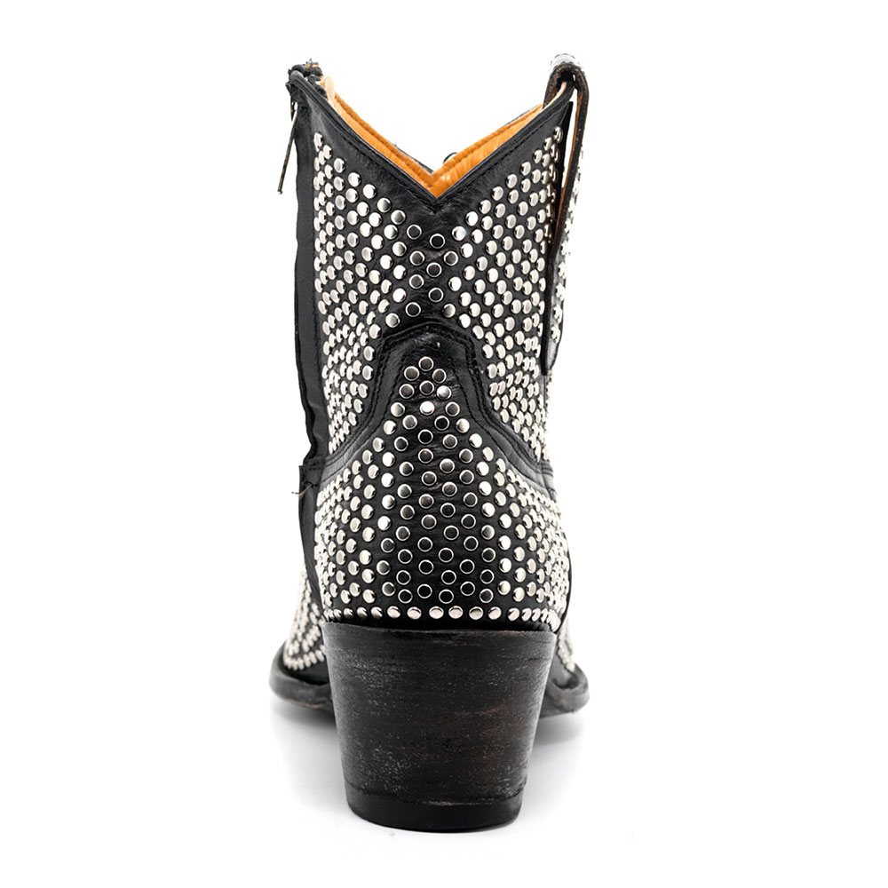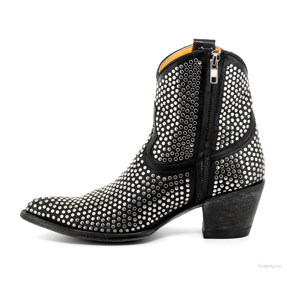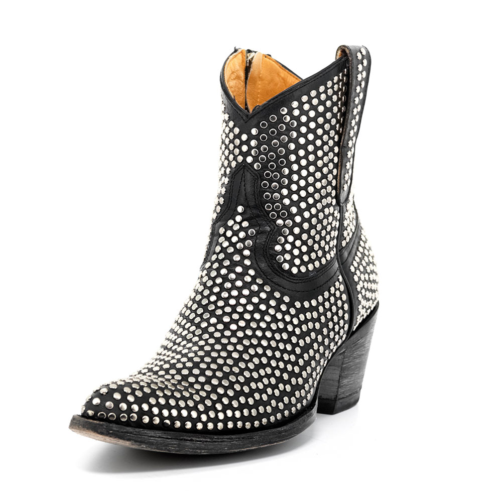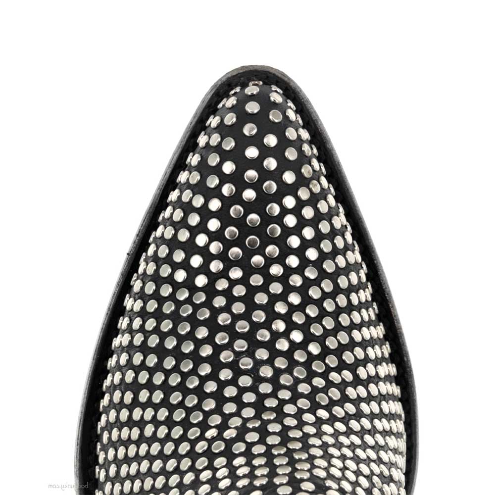 Black Pointed Toe Studded Western Boots for Women with Zipper
