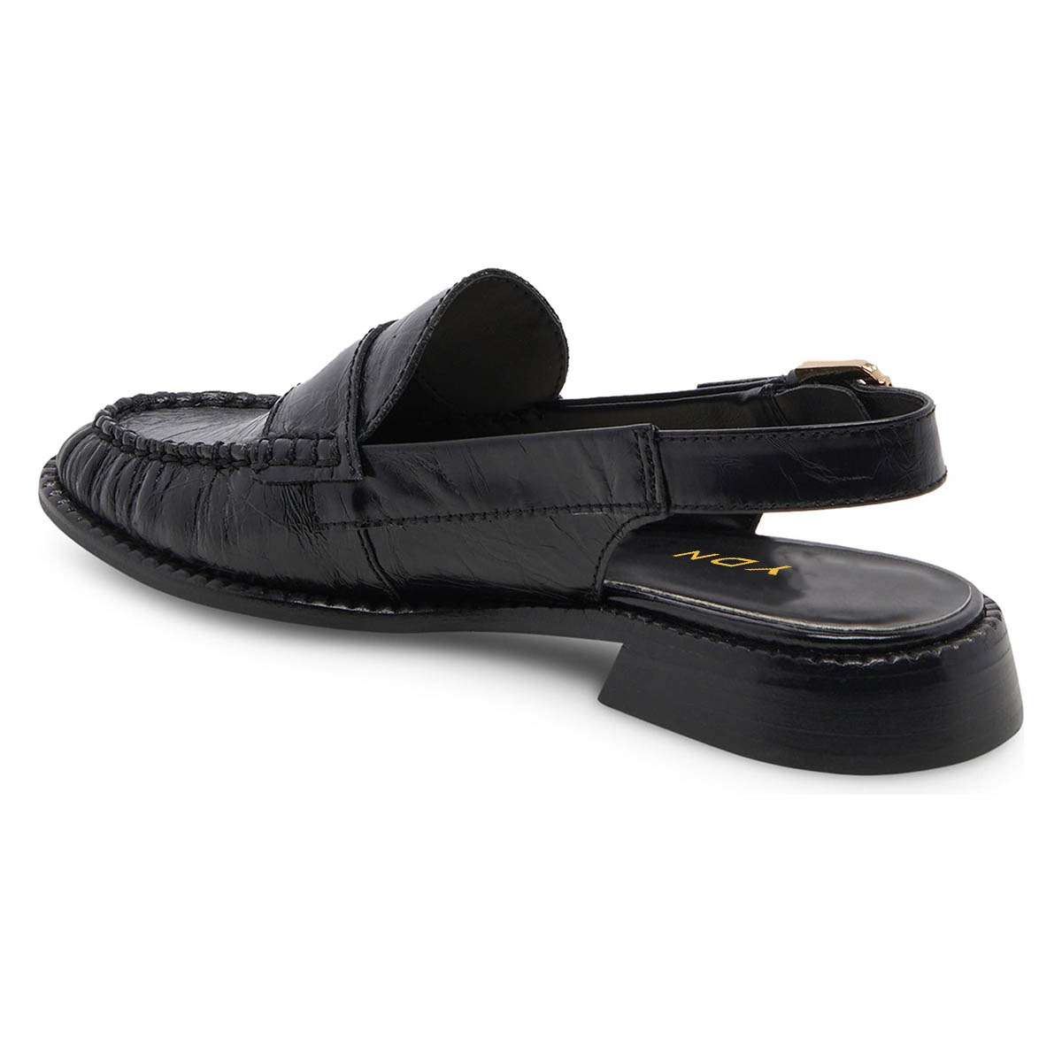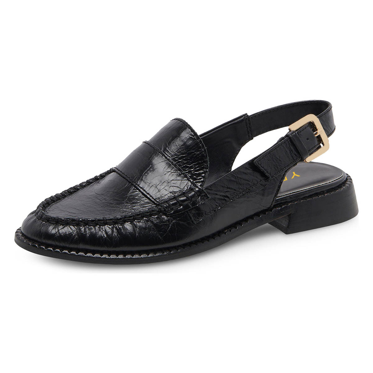 Black Round Toe Vegan Leather Flat Slingback Loafer Shoes for Women