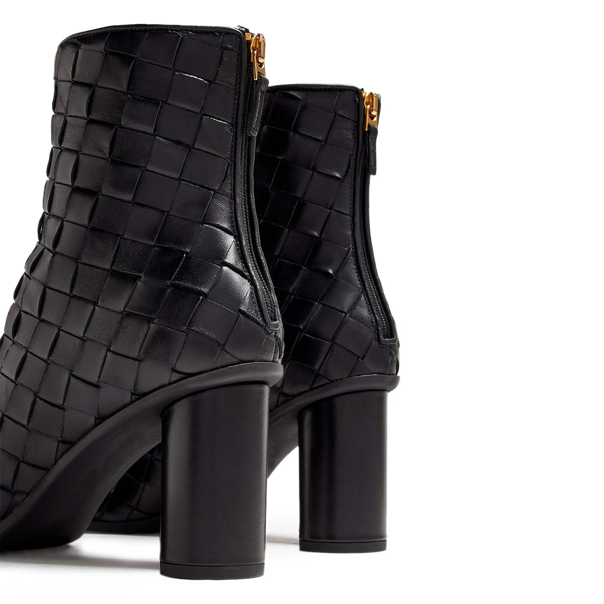Special Designs: The round-toe short boots feature cylinder heels, woven details, and a back zipper design.