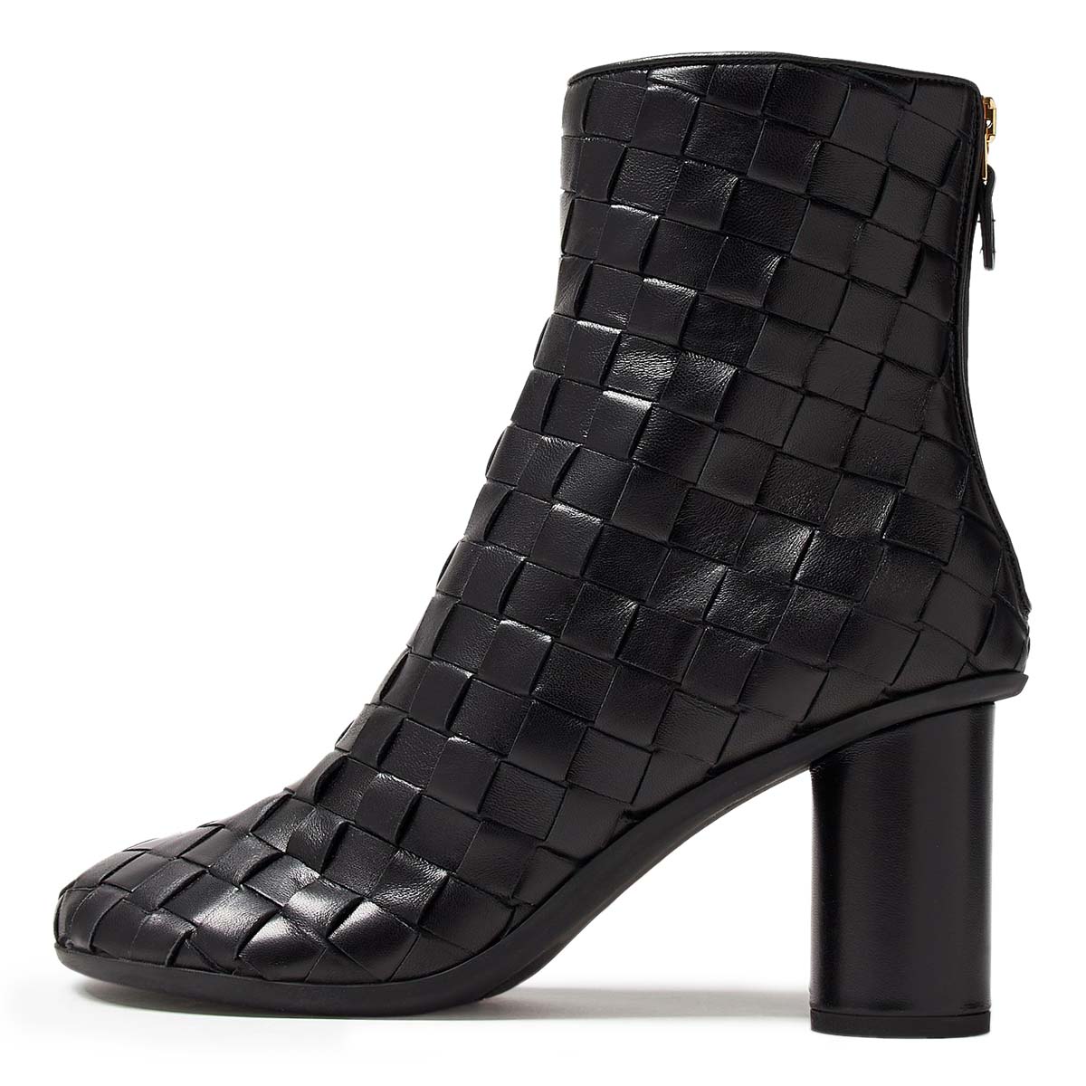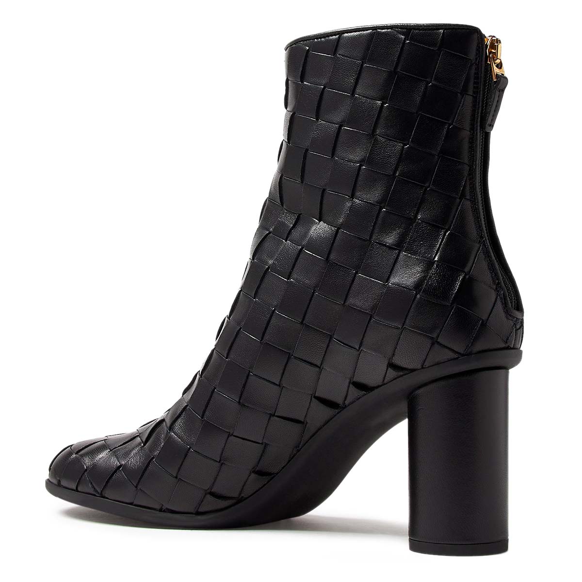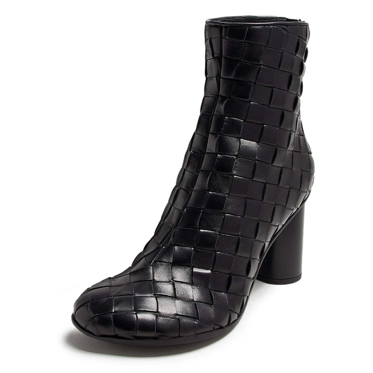 Black Round Toe Woven Cylinder Heel Zipper Short Boots for Women