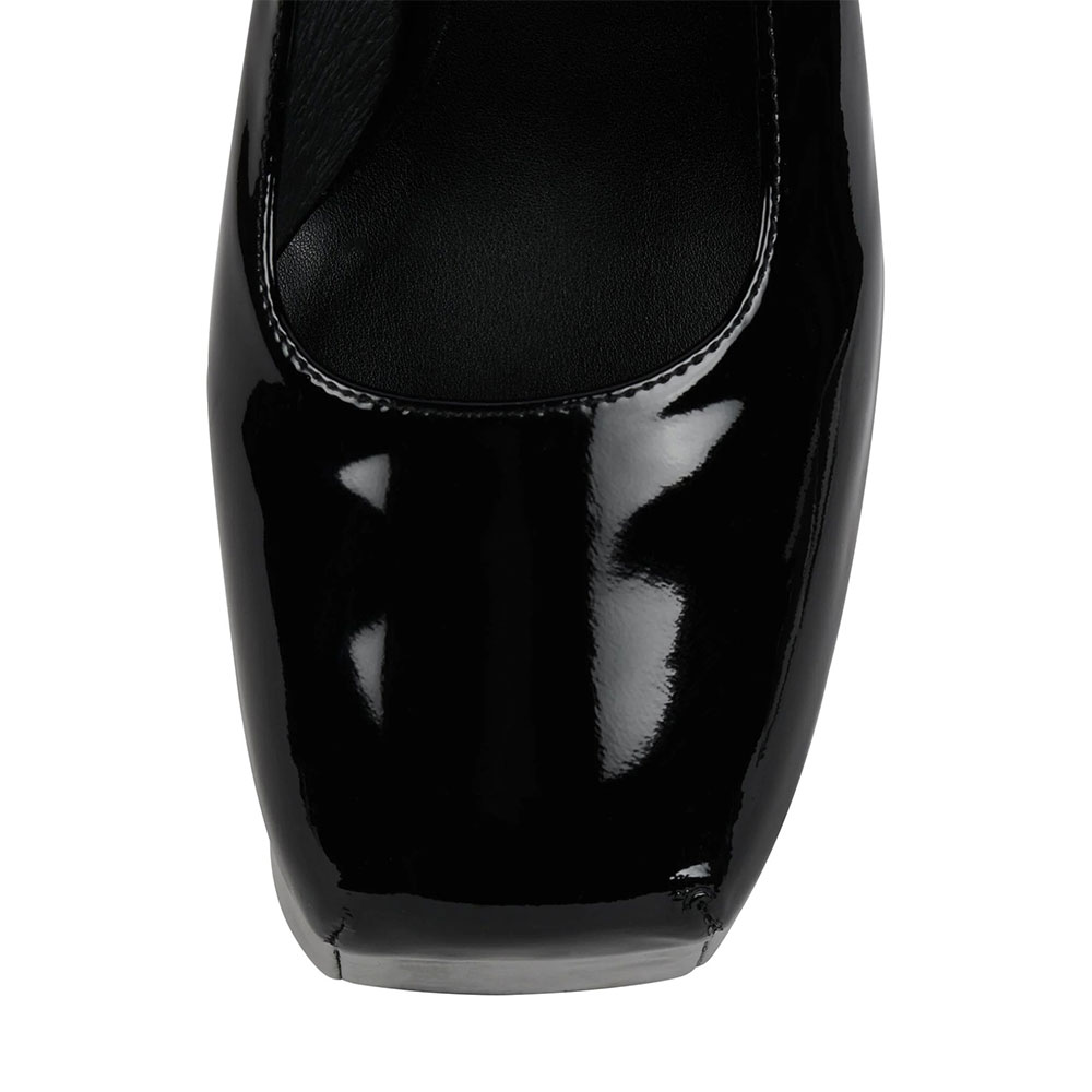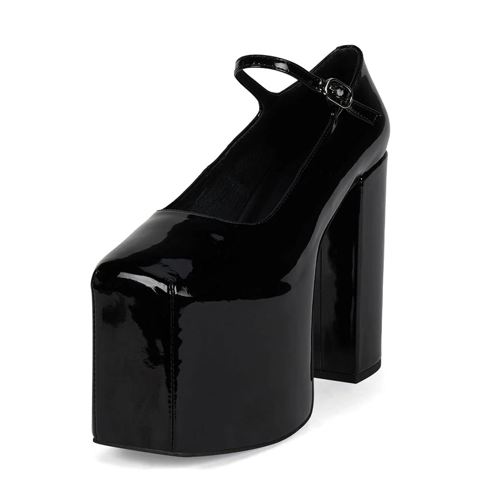 Black Square Toe Chunky Heel Mary Jane Platform Shoes with Buckle