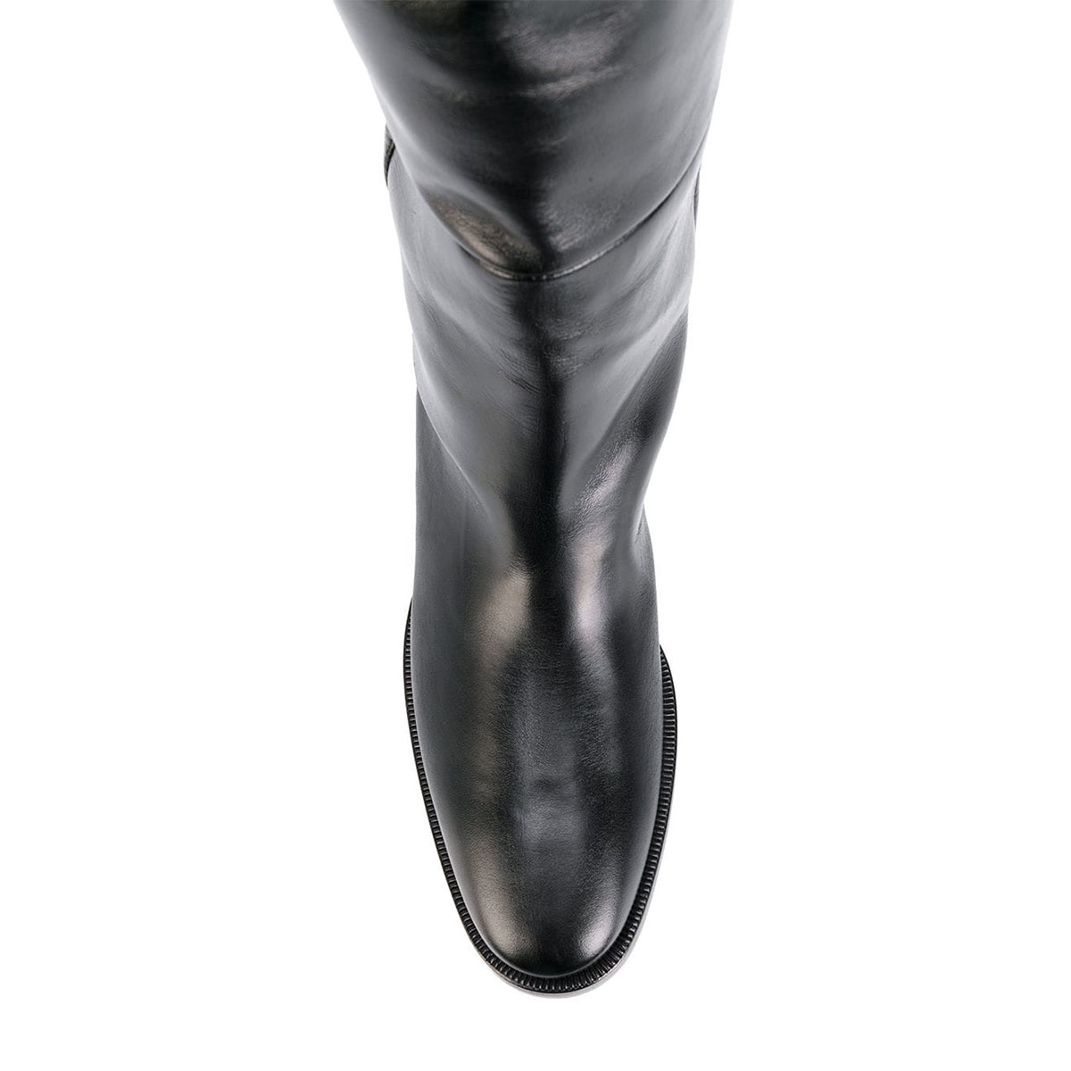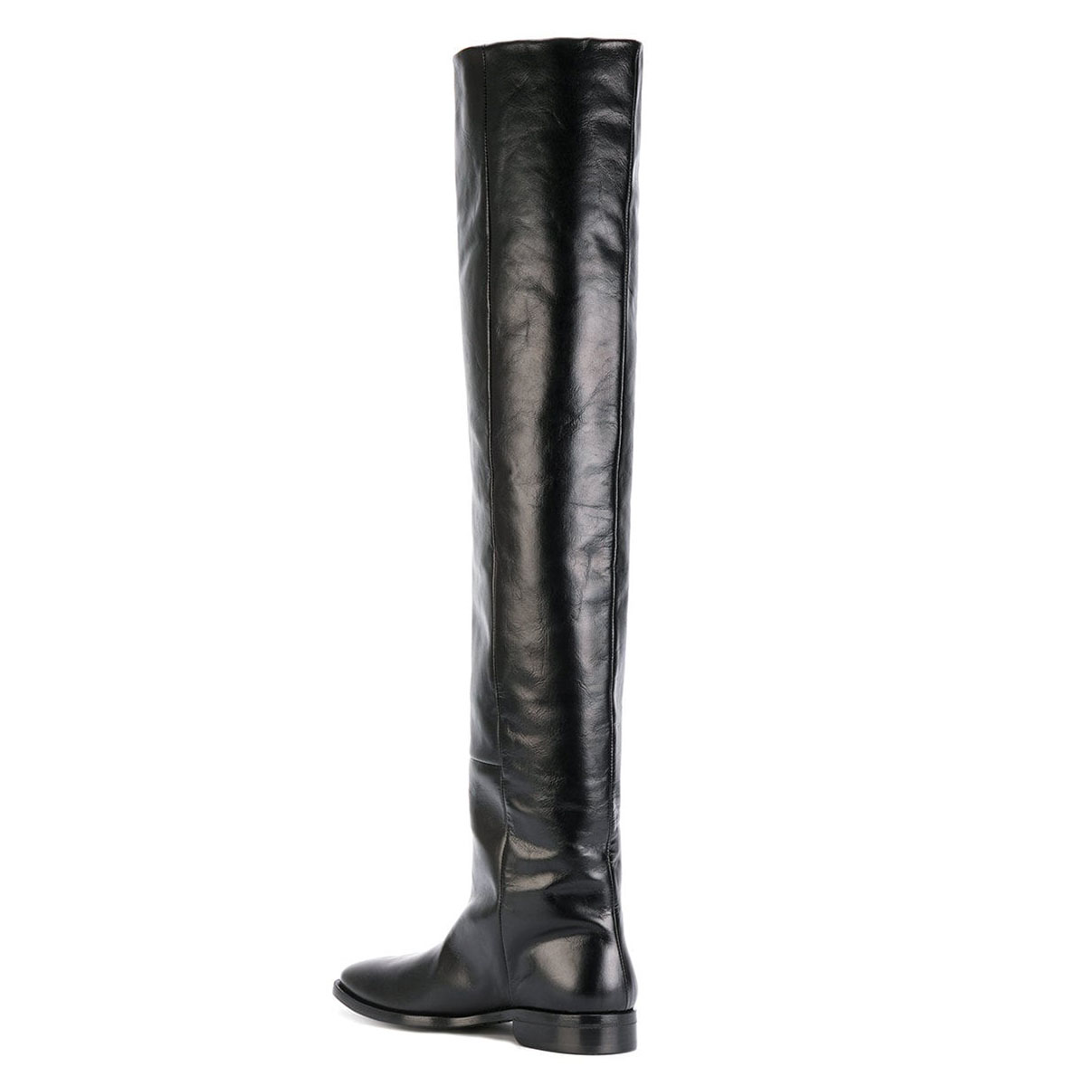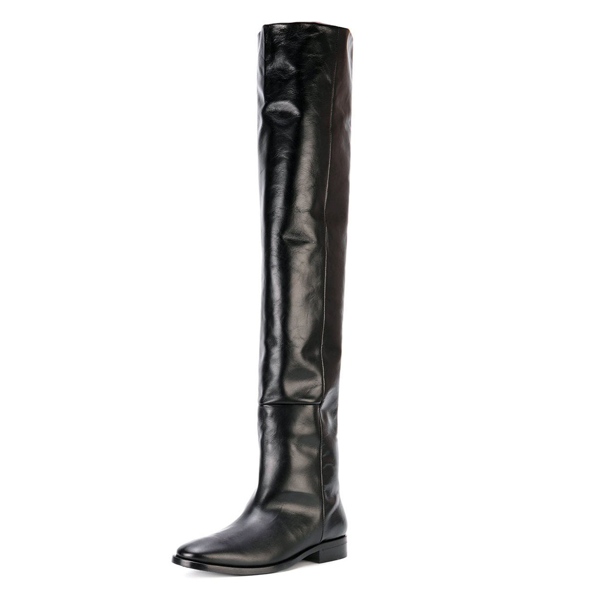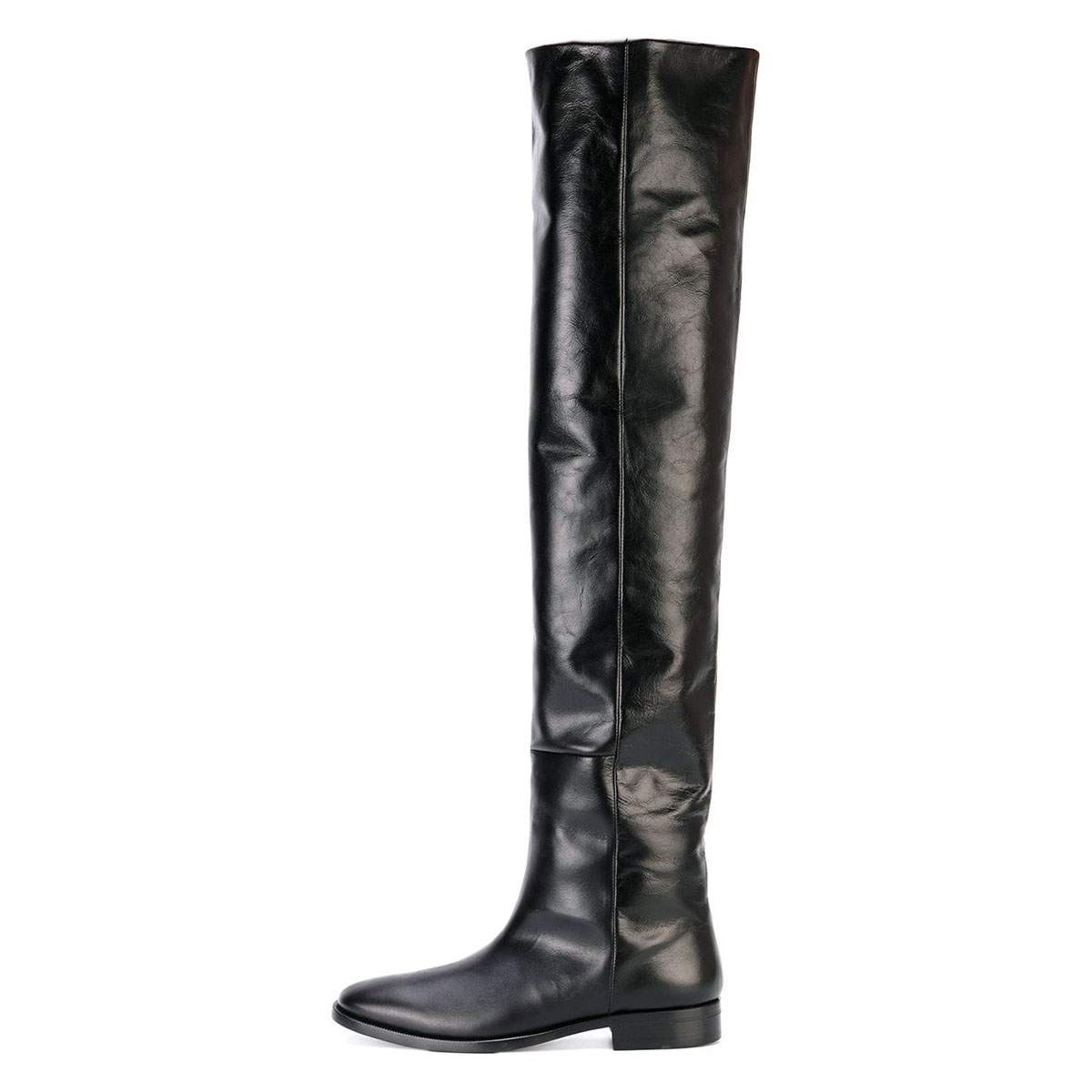 Black Vegan Leather Almond Toe Pull-On Thigh-High Boots for Women