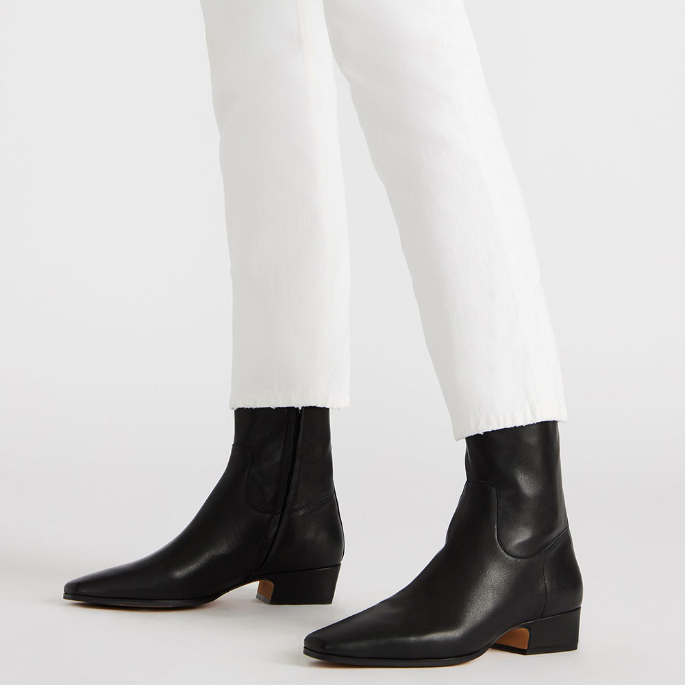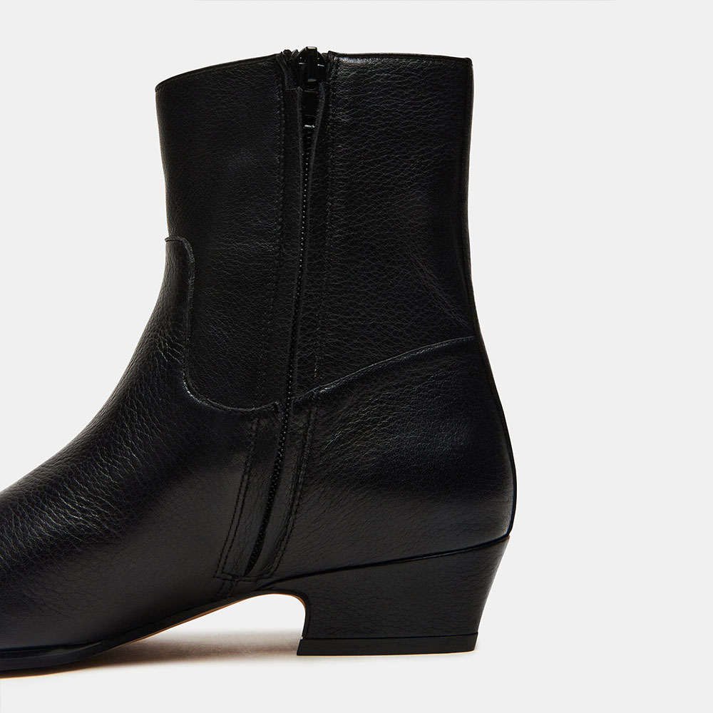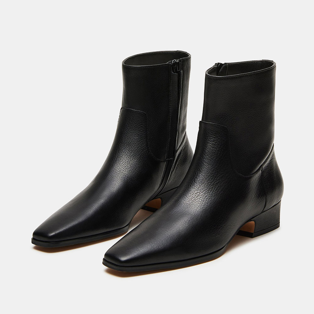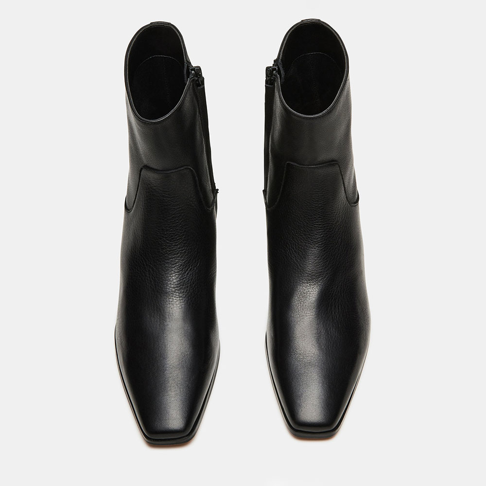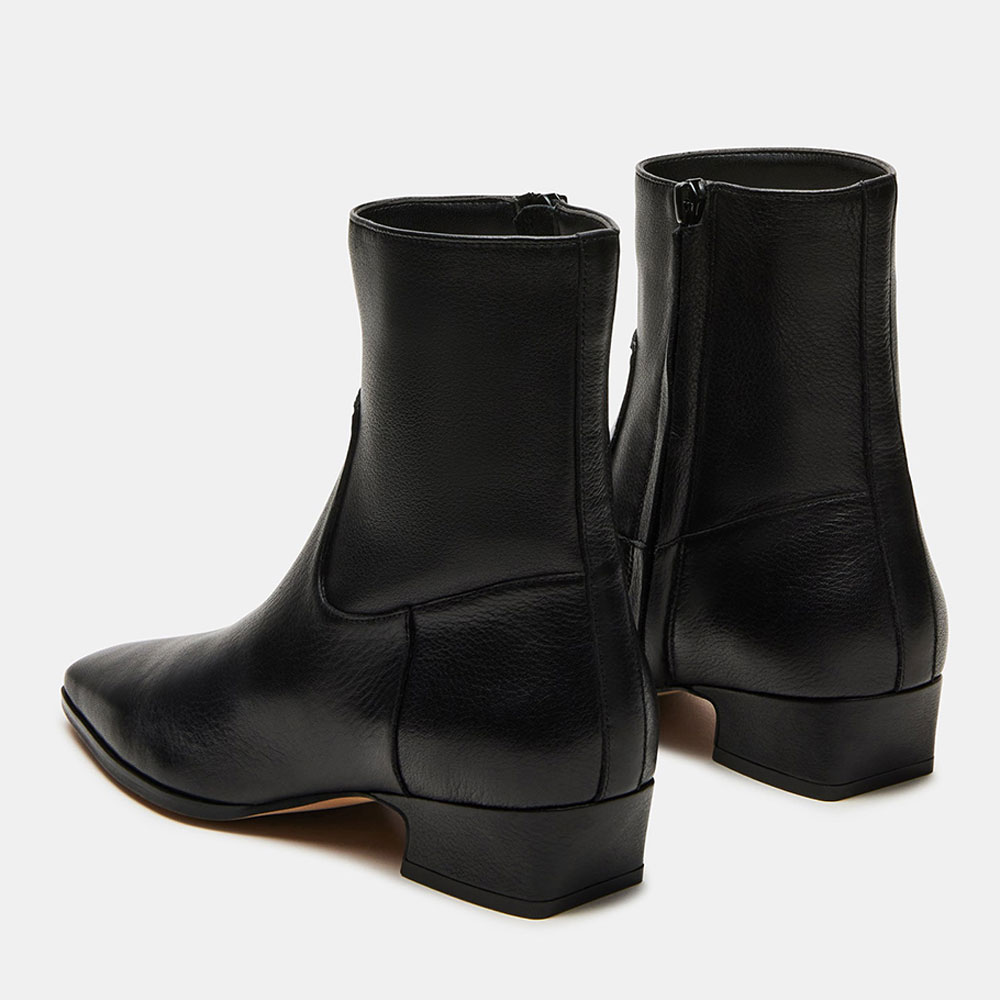 Black Vegan Leather Chunky Heel Square Toe Zipper Ankle Boots