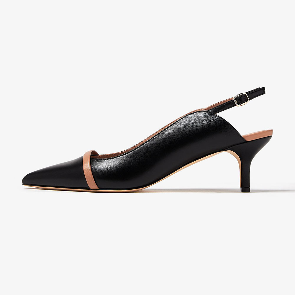 • Special Designs: The pointed-toe slingback pumps feature classy kitten heels.