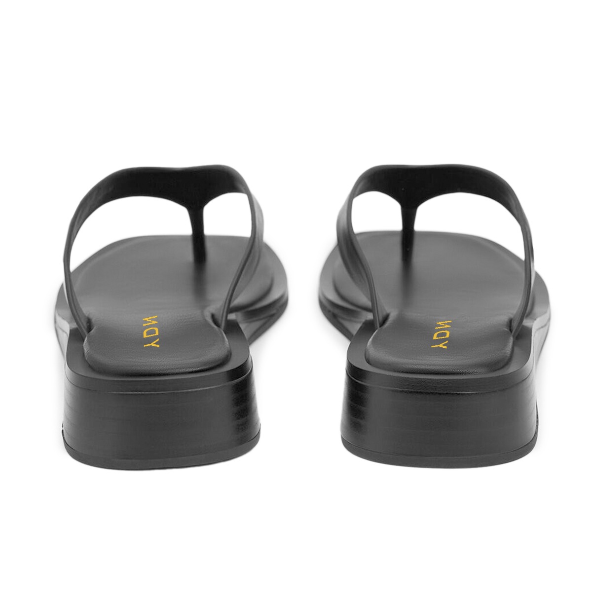 Black Vegan Leather Open Square Toe Flat Casual Flip Flops for Women