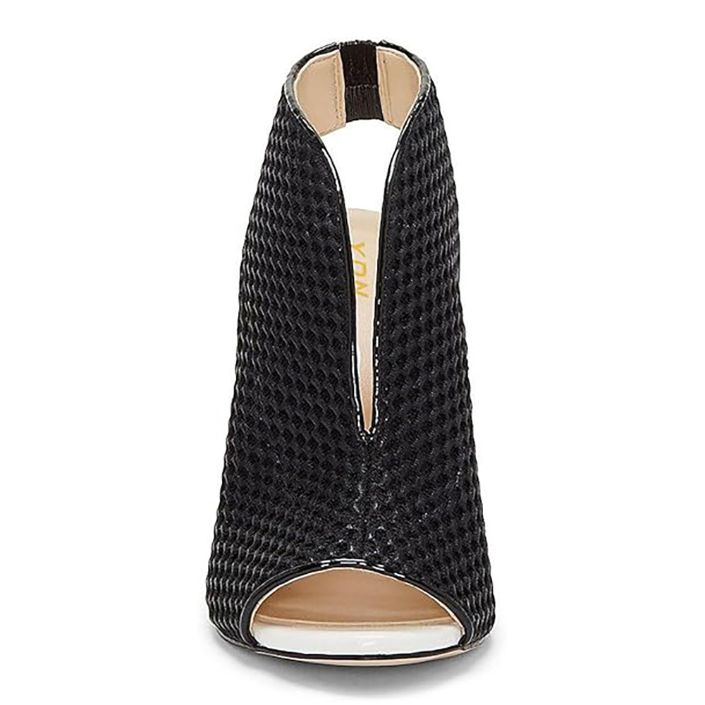 • Special Designs: Black and white sandals feature a slingback pattern and an elegant high heel.