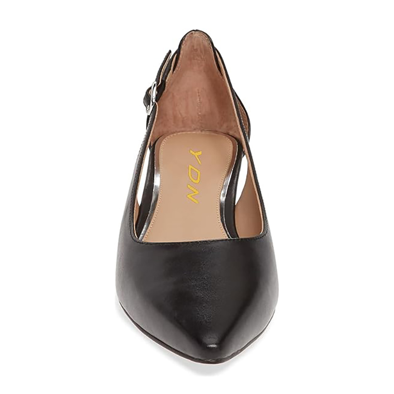 • Special Designs: Black comfortable cut-out inlay pumps with slip-on convinience.