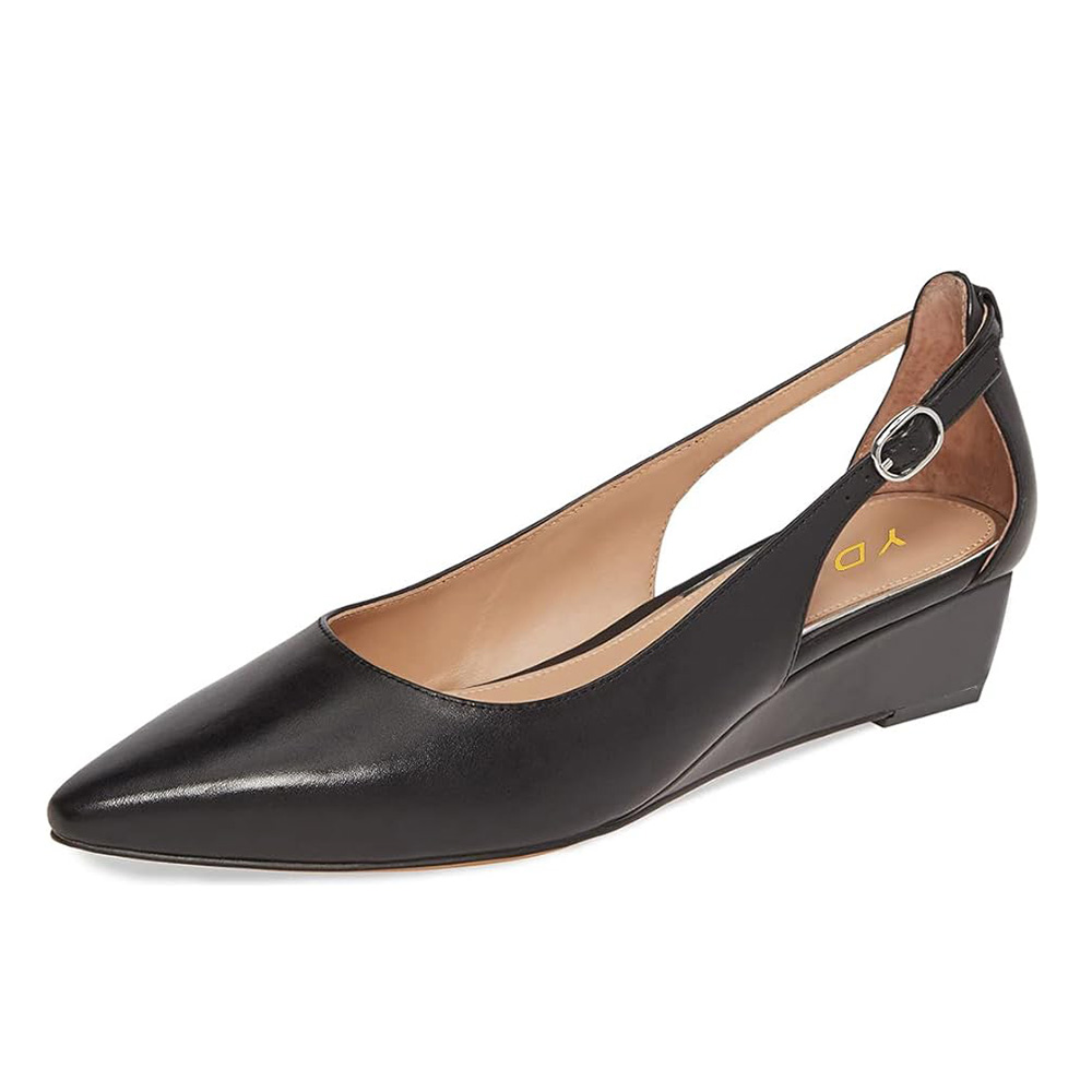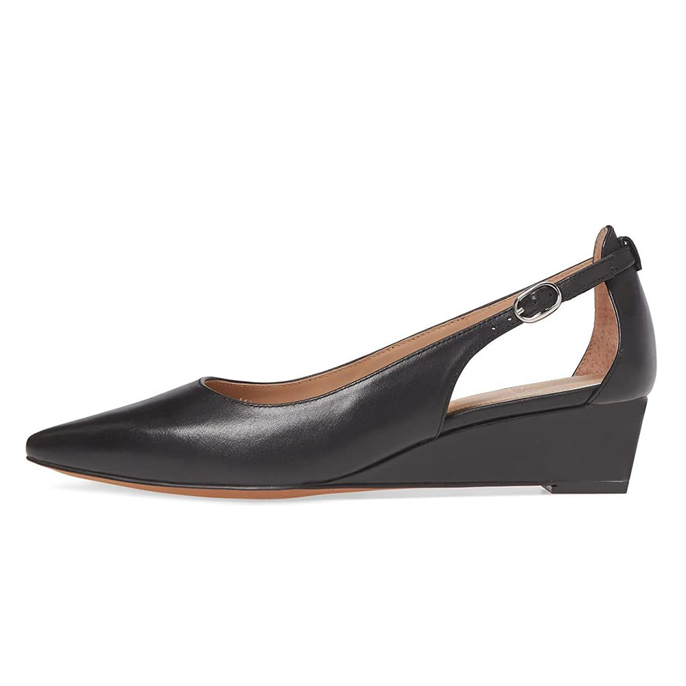 Black Vegan Leather Pointed Cut-Out Wedge Heel Classy Formal Pumps