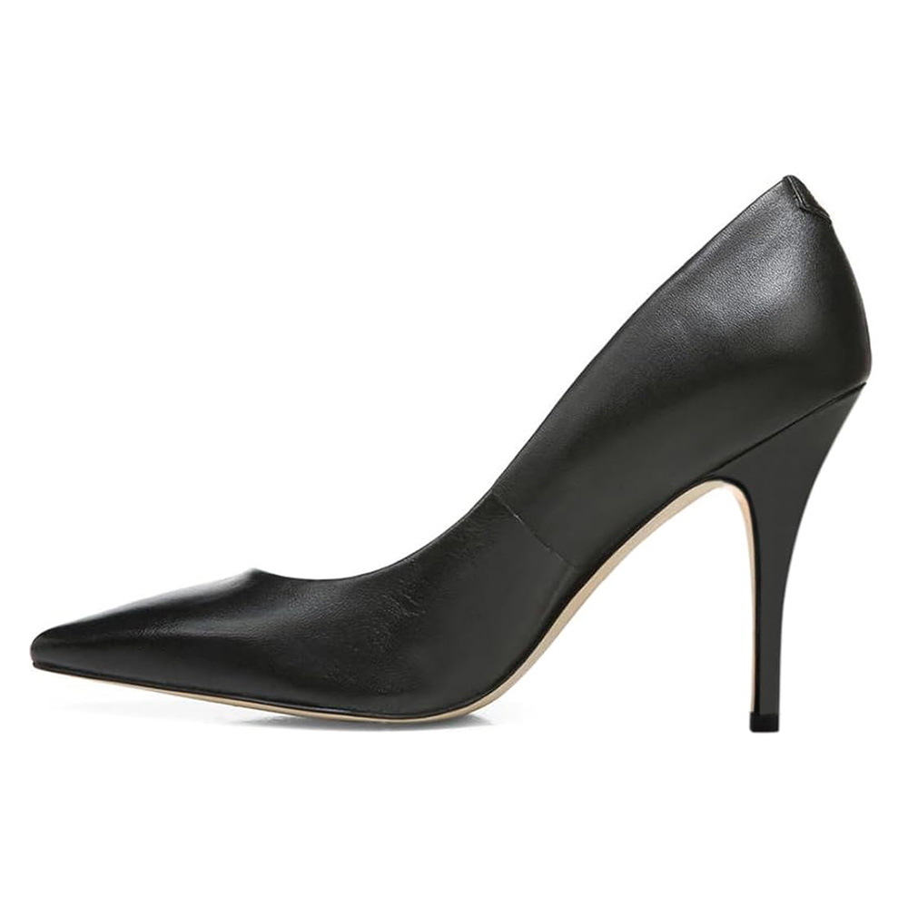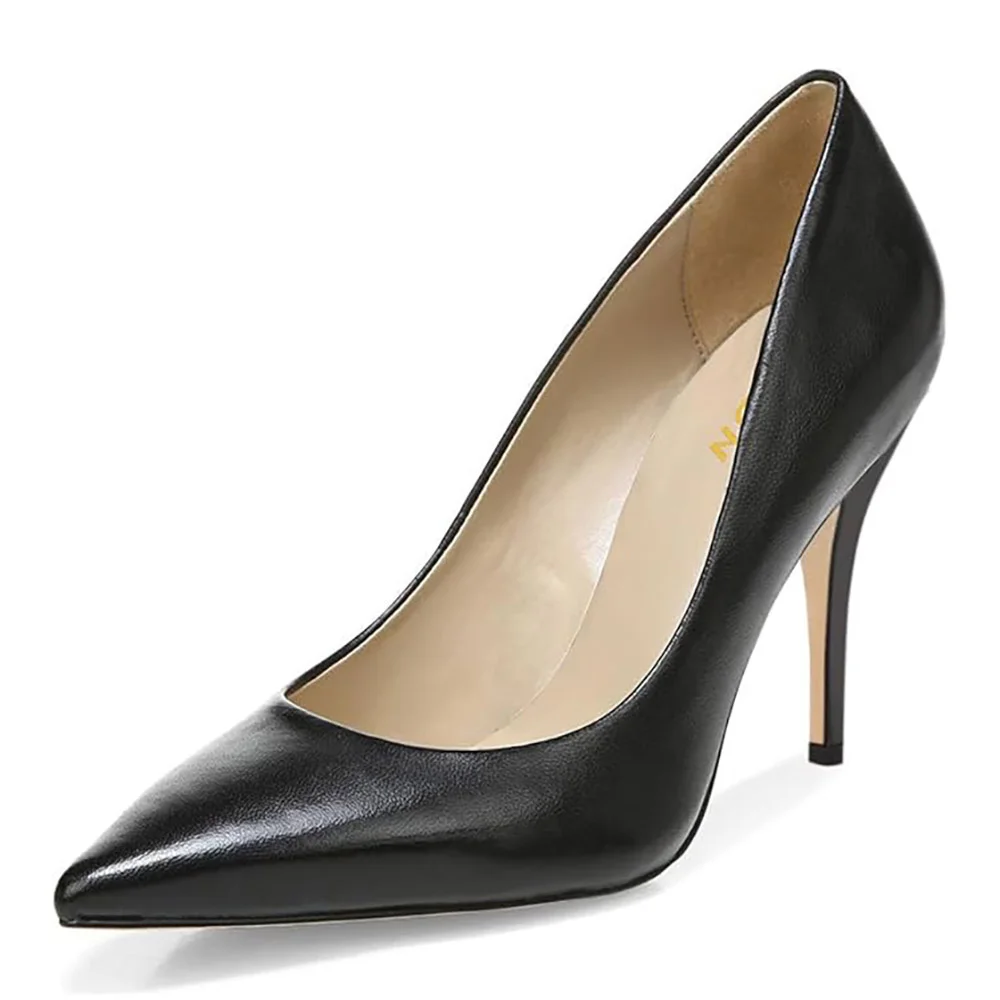 Black Vegan Leather Pointed Toe Stiletto Heel Pumps for Women