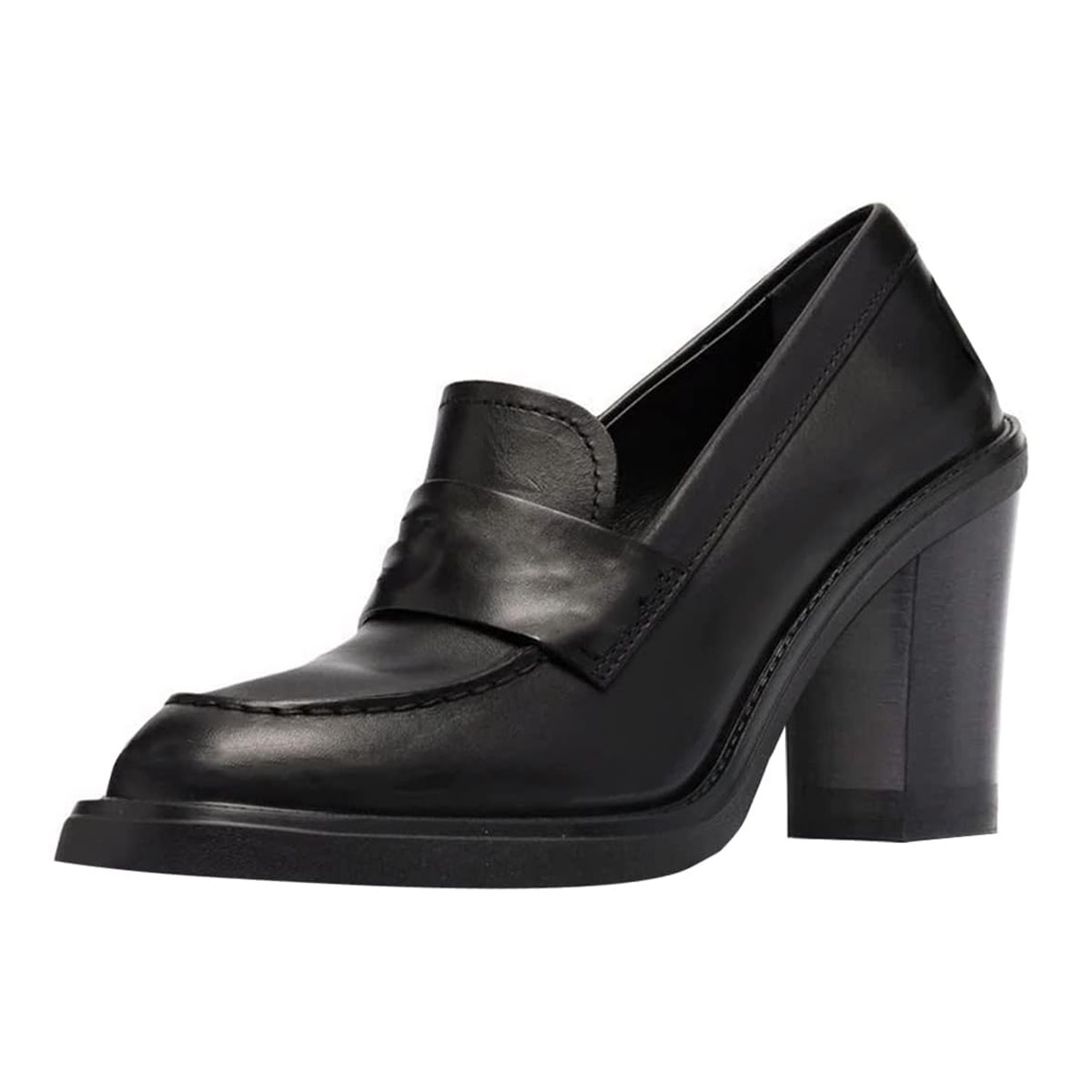 • Special Designs: Black loafers with classic block heel and pull-on convenience.